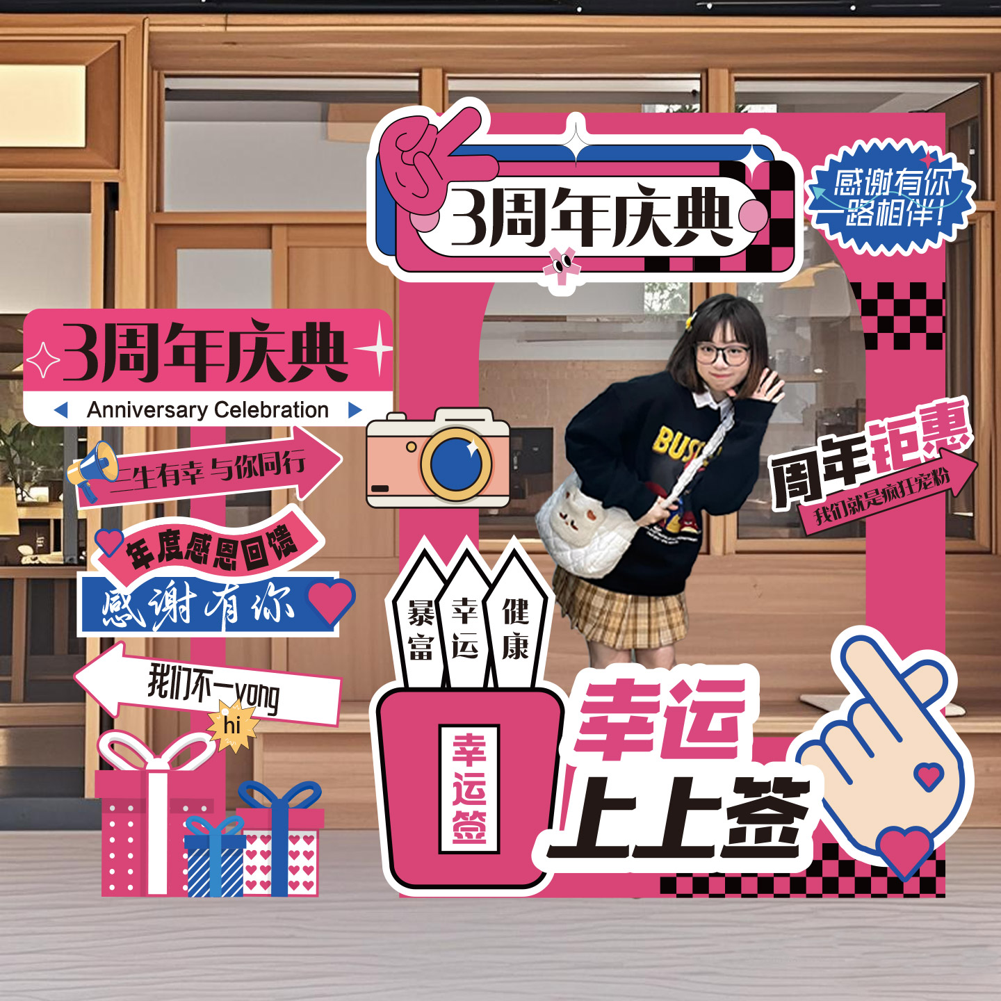 您的位置:他他商城  >   >  周年庆布置场景装饰主题活动氛围仪式打卡道具定制拍照框展板