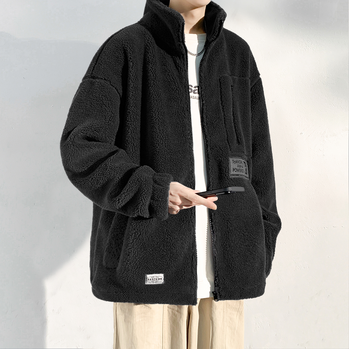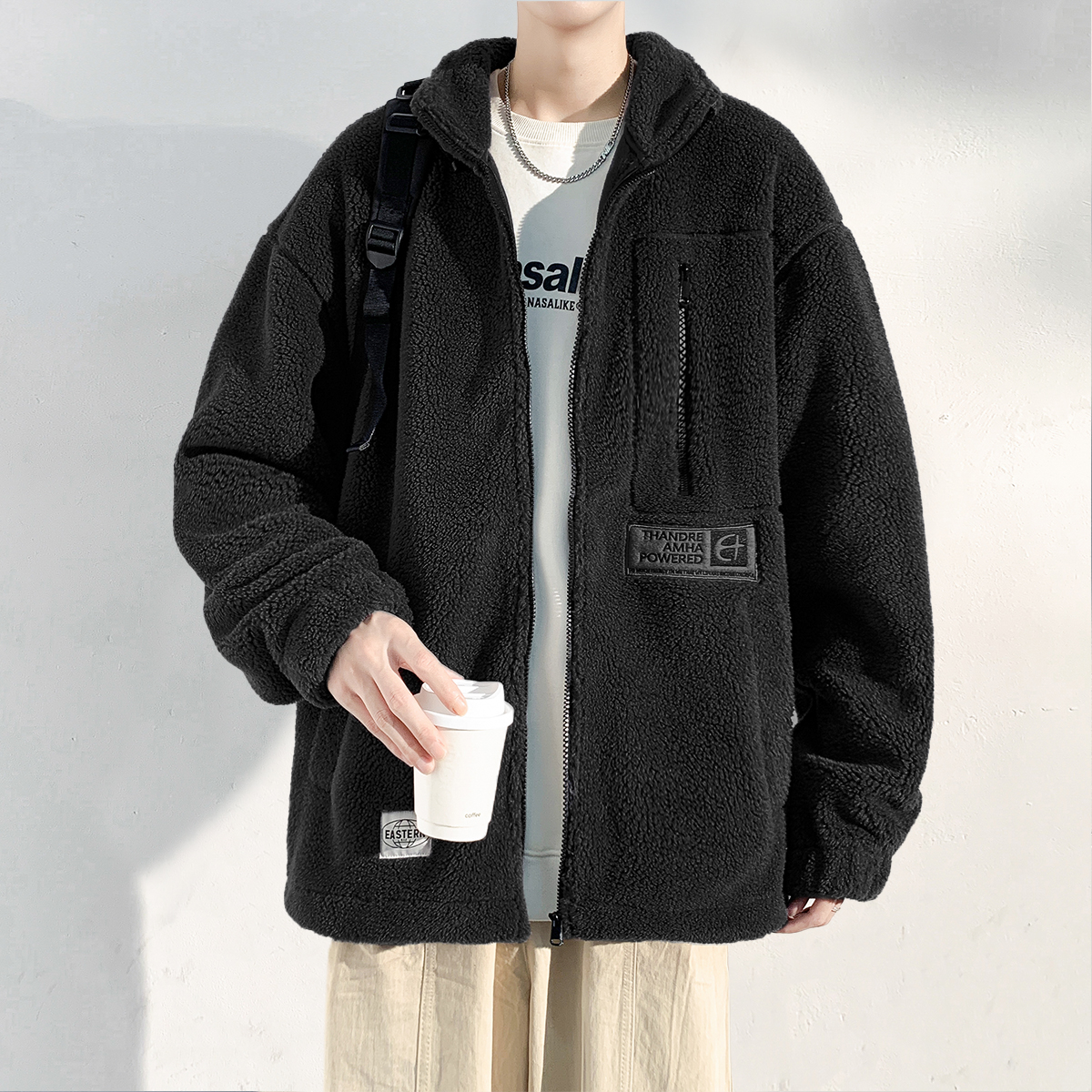 您的位置:他他商城  >   >  唐狮仿羊羔毛外套男款2025冬季新款韩版拼接立领宽松加厚保暖夹克