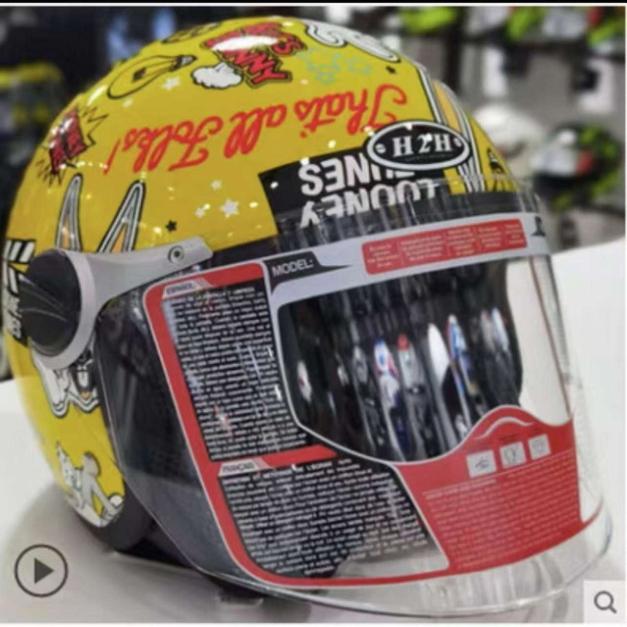 您的位置:他他商城  >   >  H2H双重认证儿童摩托车电动车头盔半盔彼得兔猫头鹰机海绵宝宝