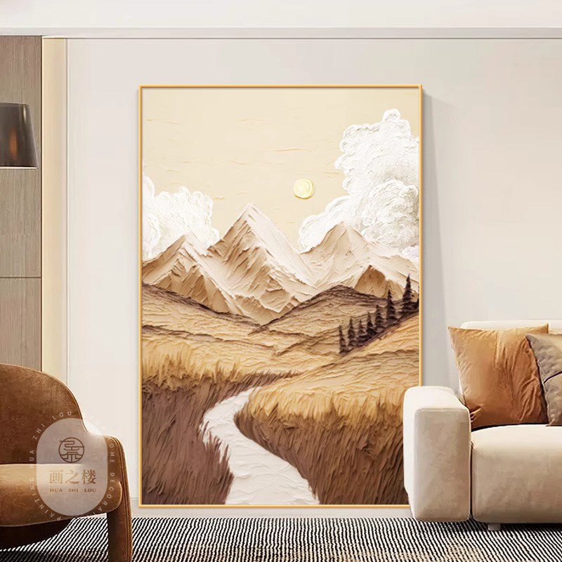 您的位置:他他商城  >   >  绿水青山客厅装饰画山水肌理大幅落地画日照金山大气入户玄关挂画