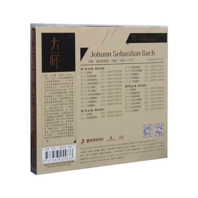 索尼古典·大师系列42古尔德演奏巴赫英国组曲BWV806-808第一集CD - 逸枫音像专营店