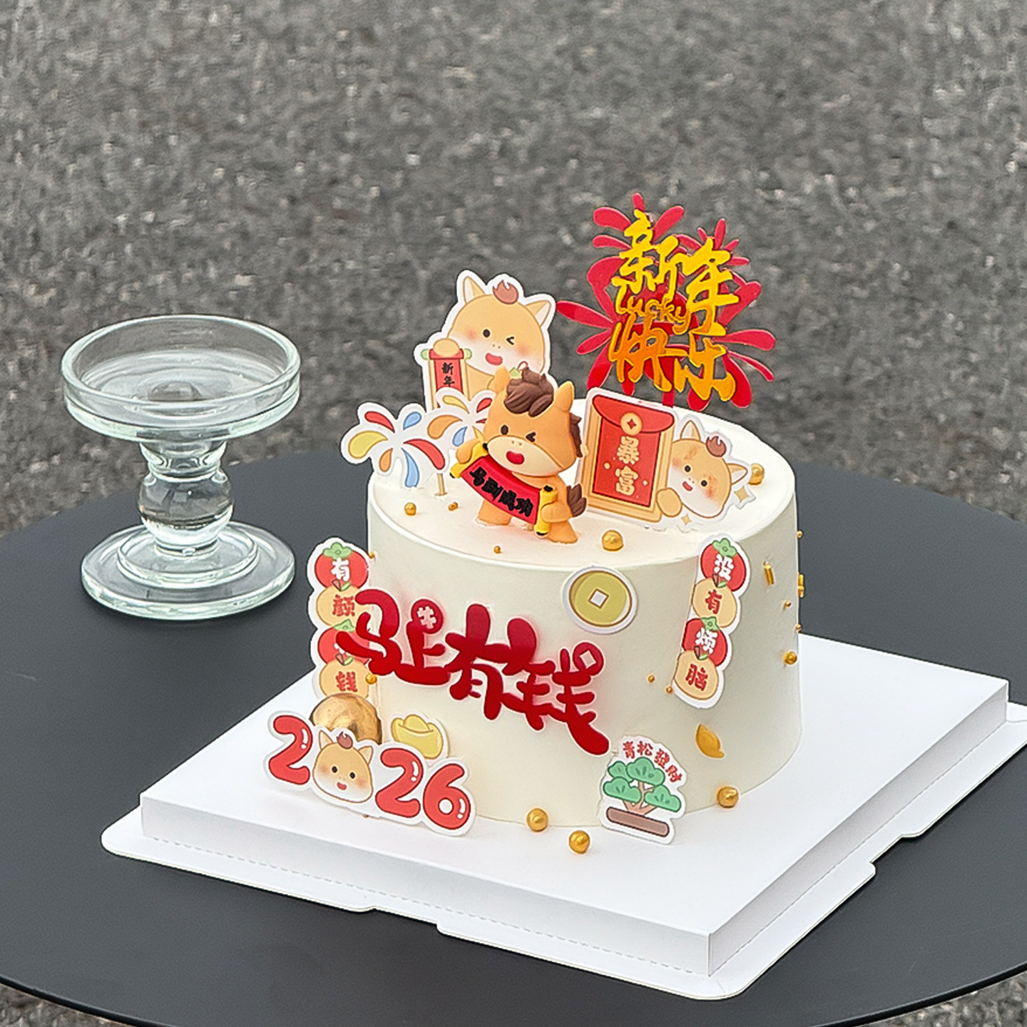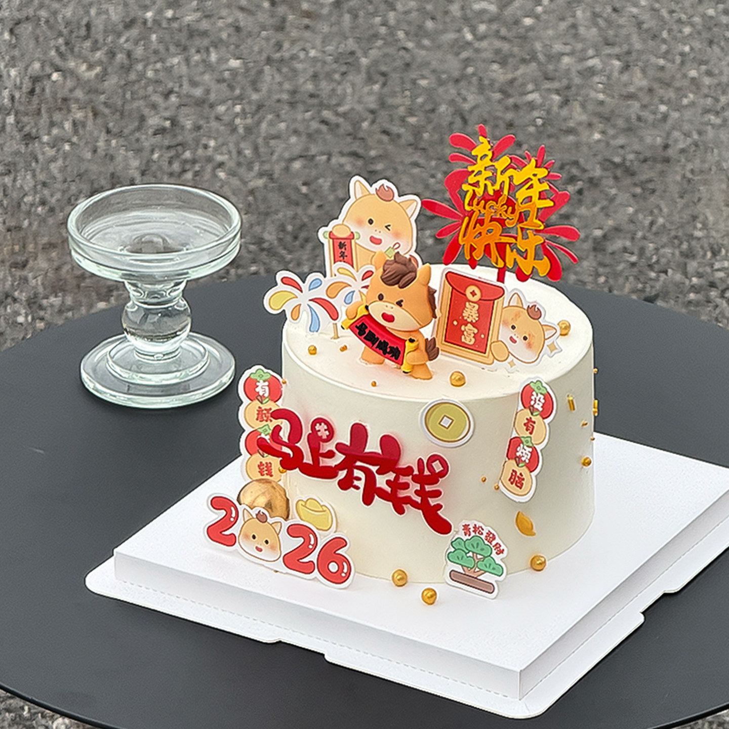 2026马年马上有钱蛋糕装饰跨年新年快乐插牌马宝宝甜品装扮插件