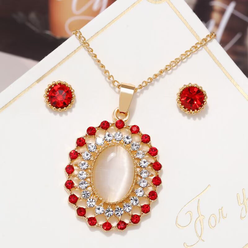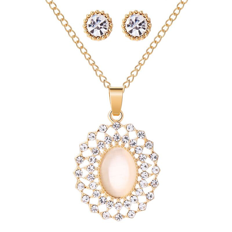Hesiod Zircon Necklace Earrings Women Jewelry Sets Fashion B - E commerce Mall