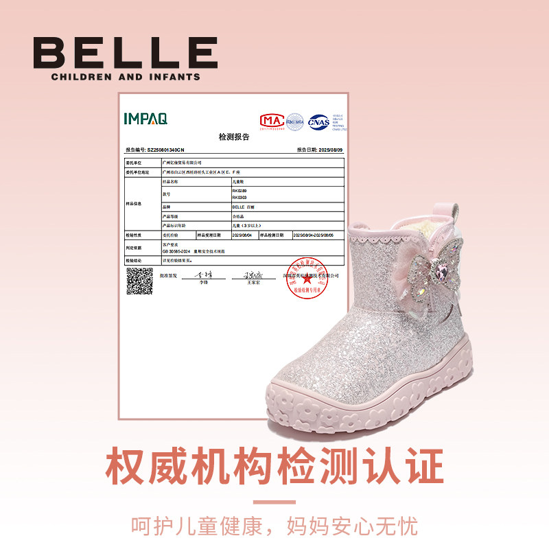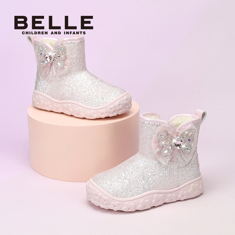 花影丨百丽童鞋女童雪地靴冬季新款加绒儿童水晶公主鞋保暖大棉靴 - 百丽集团童鞋旗舰店
