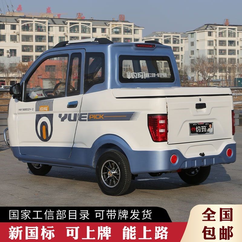 新国标约玛两门电动三轮皮v卡车可上牌日常通勤油电两用全封闭货