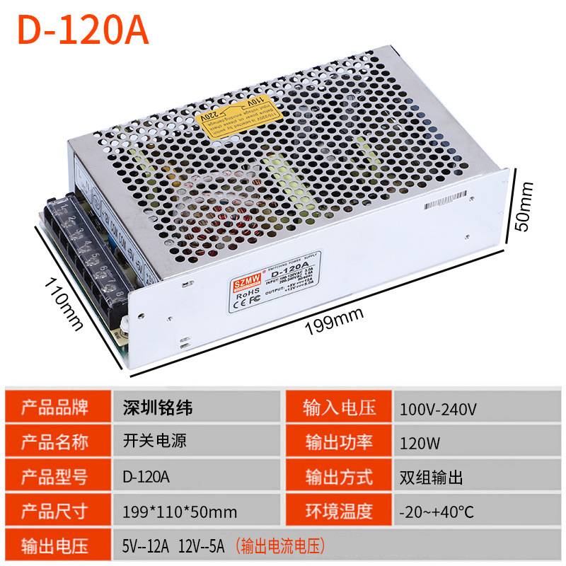 铭纬120W开关电源D-120A/B/C 5V6A24V4A12V工控机械双组输出直流