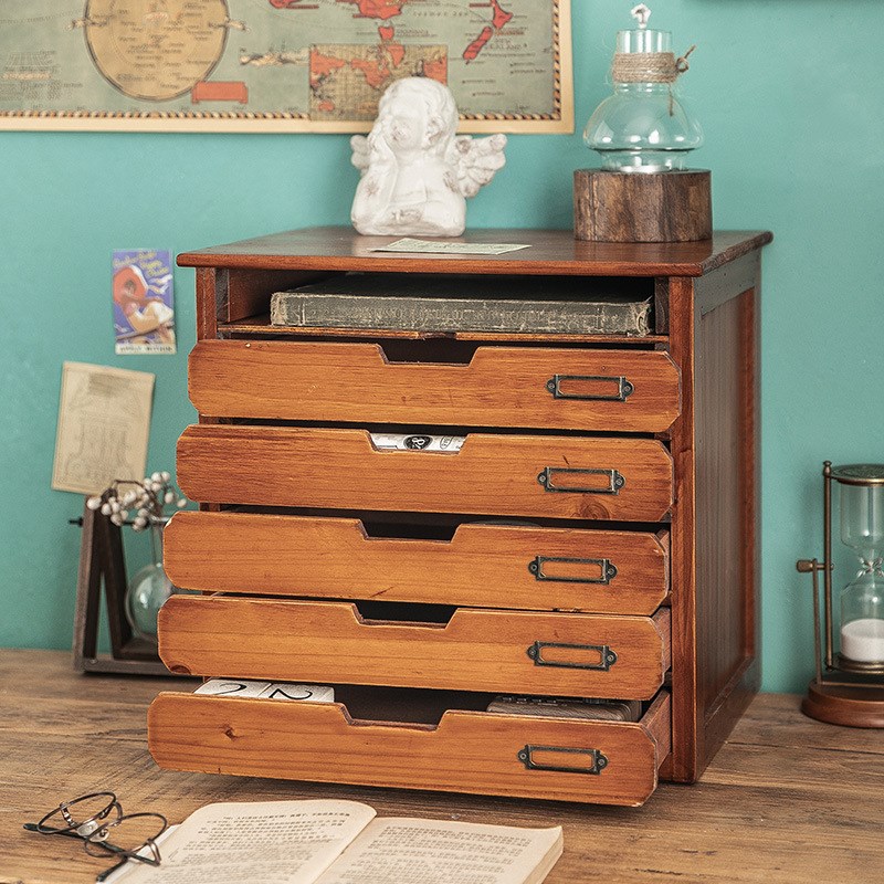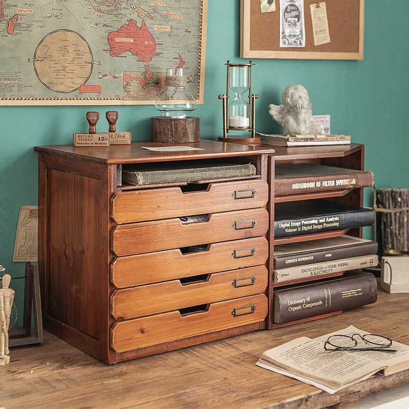 办公室桌面收纳盒工位文件柜木质抽屉置物架书桌a4档案手账整理盒 - 沛涵设计商贸