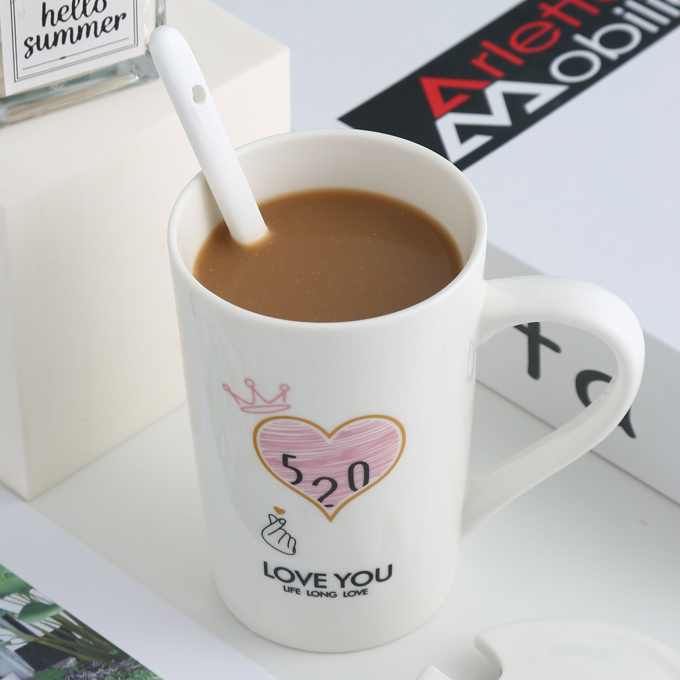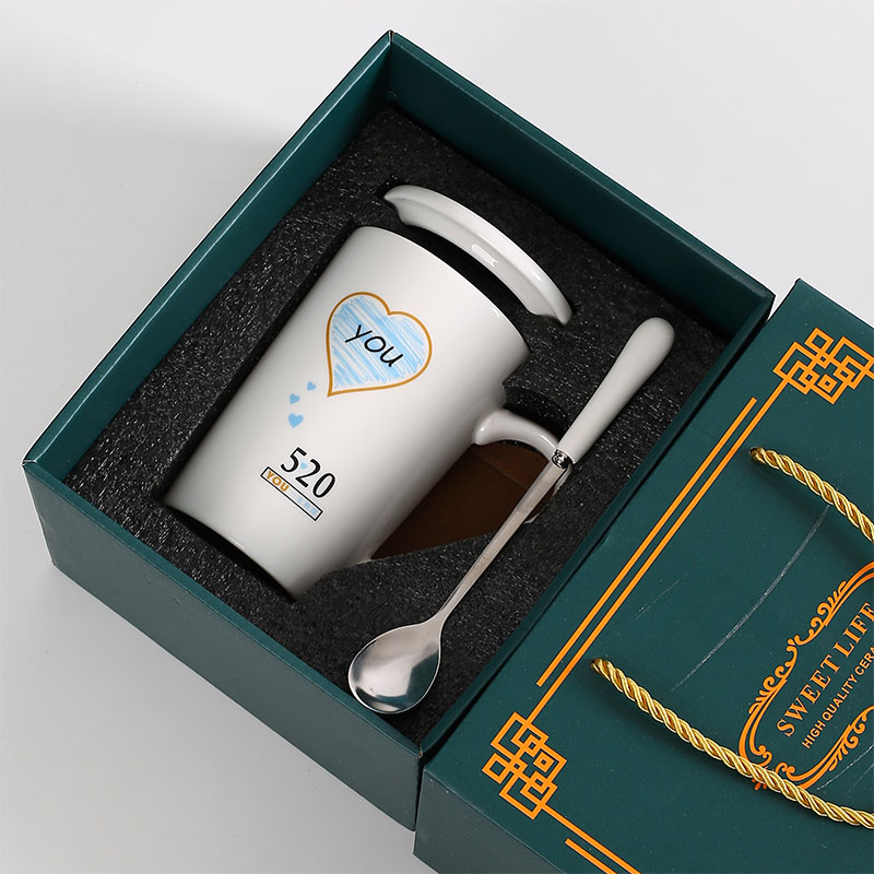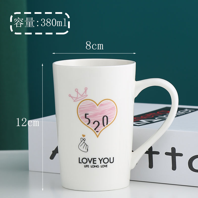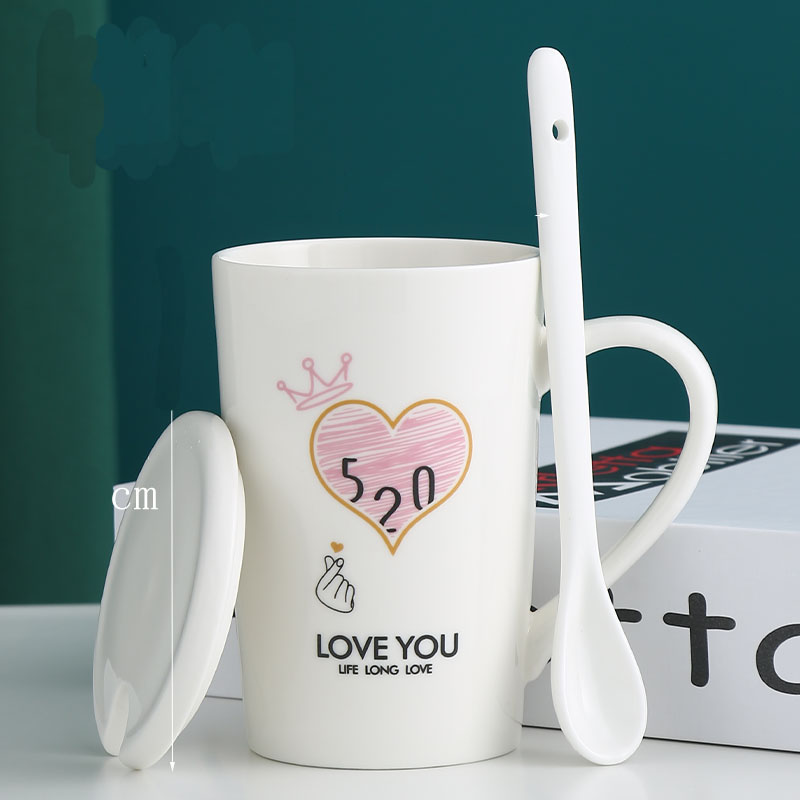 简约家用杯子情侣水杯陶瓷马克杯带盖勺办公室咖啡杯女喝水杯一对 - 永佳家居用品