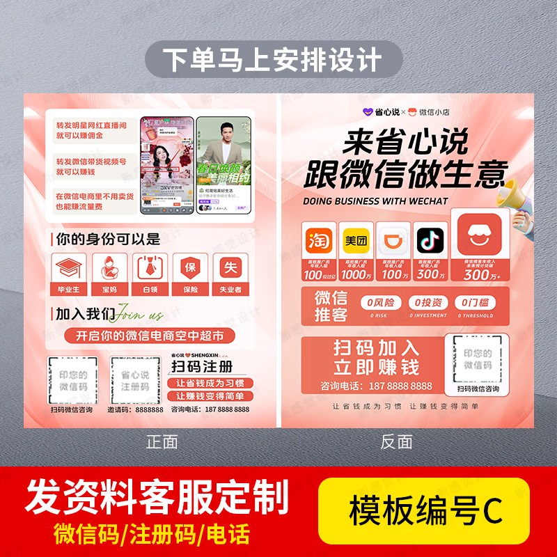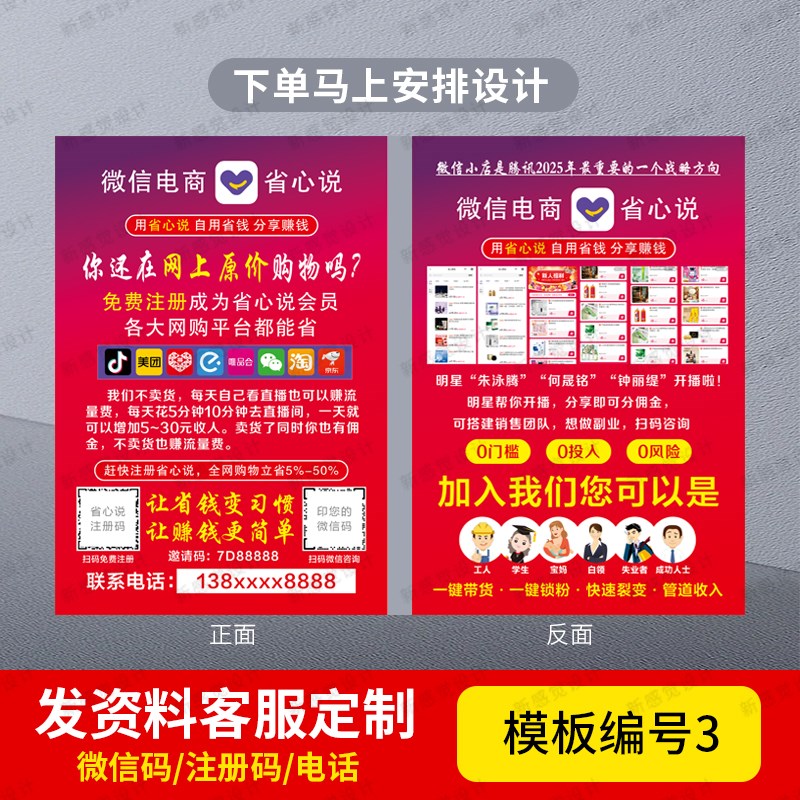 省心说小店宣传单地推拉新单页5彩页定制面印刷名片海报