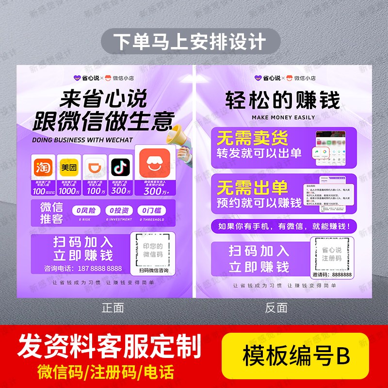 省心说小店宣传单地推拉新单页5彩页定制面印刷名片海报 - 苔砌藏萤商城