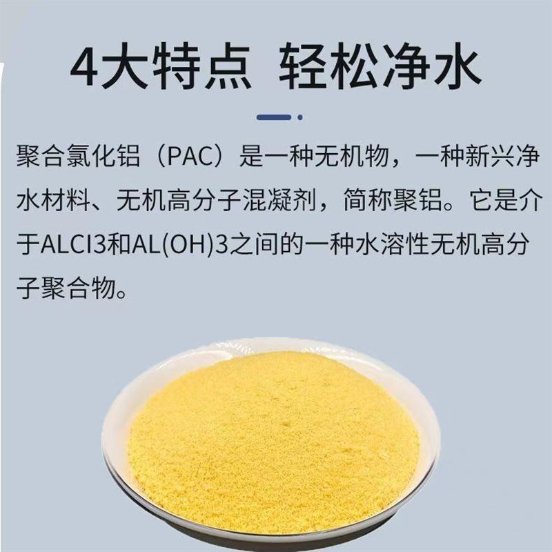 您的位置:他他商城  >   >  聚合氯化铝PC絮凝剂工业污水养殖循环用水洗沙自来水厂沉淀剂