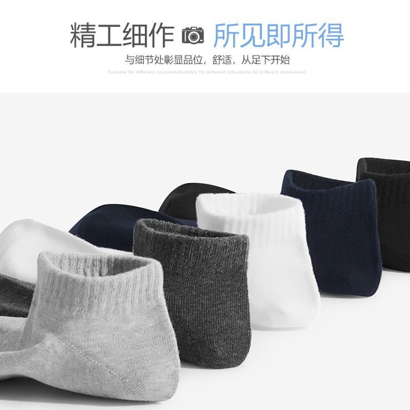 南极人袜子男士短袜纯棉中筒防臭吸汗薄款夏季船袜夏天黑色短筒袜 - 沐萱实业