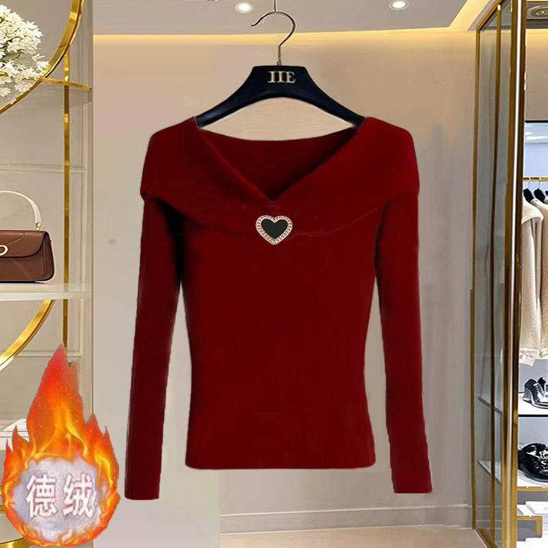 您的位置:他他商城  >   >  韩系chic酒红色加绒加厚2024秋冬新款洋气高端别致百搭打底上衣女