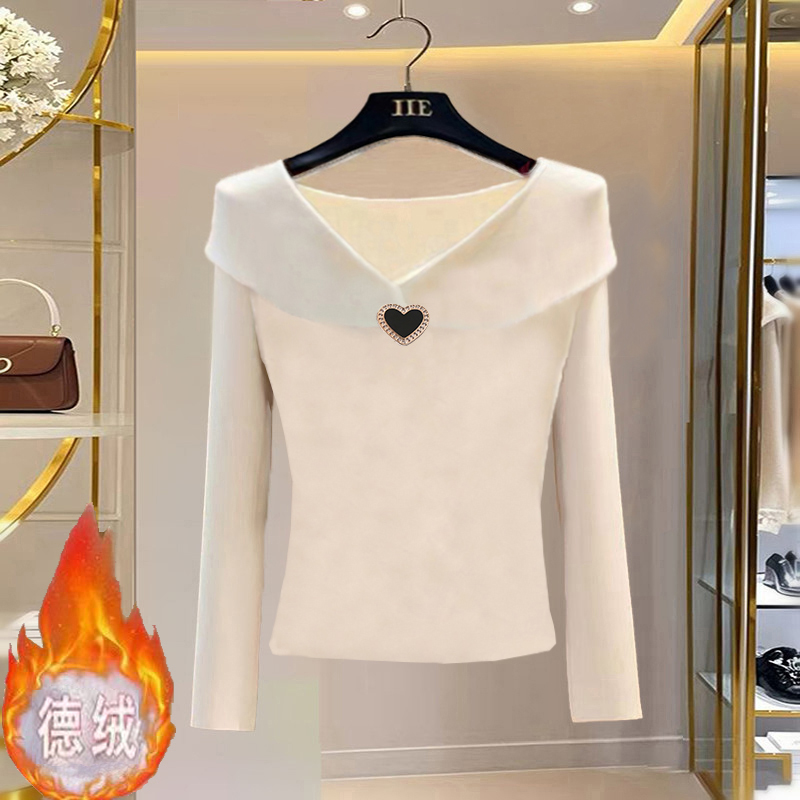 韩系chic酒红色加绒加厚2024秋冬新款洋气高端别致百搭打底上衣女 - yy潮流厂家直销店
