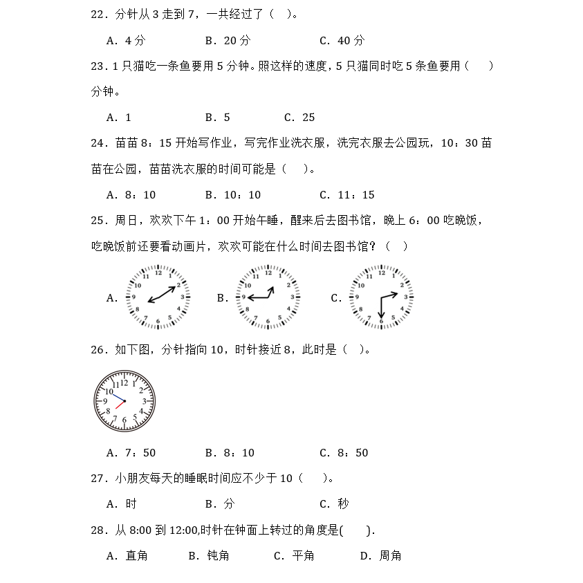 您的位置:他他商城  >   >  二年级上下册认识时间钟表时分秒单位换算分针选择填空判断题练习