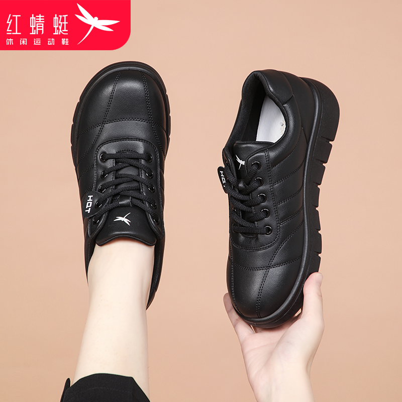 红蜻蜓女鞋秋冬新款鞋子运动休闲鞋女旅游中老年妈妈真皮黑色单鞋 - 红蜻蜓鞋类旗舰店