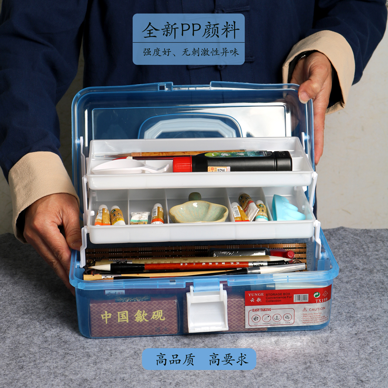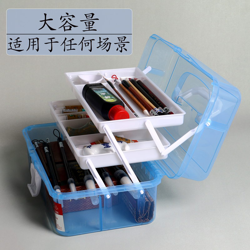 三层大容量美术多层手提工具箱美术生绘画水粉水彩颜料书法毛笔透明国画小学生画收纳箱培训班专用便携三年级