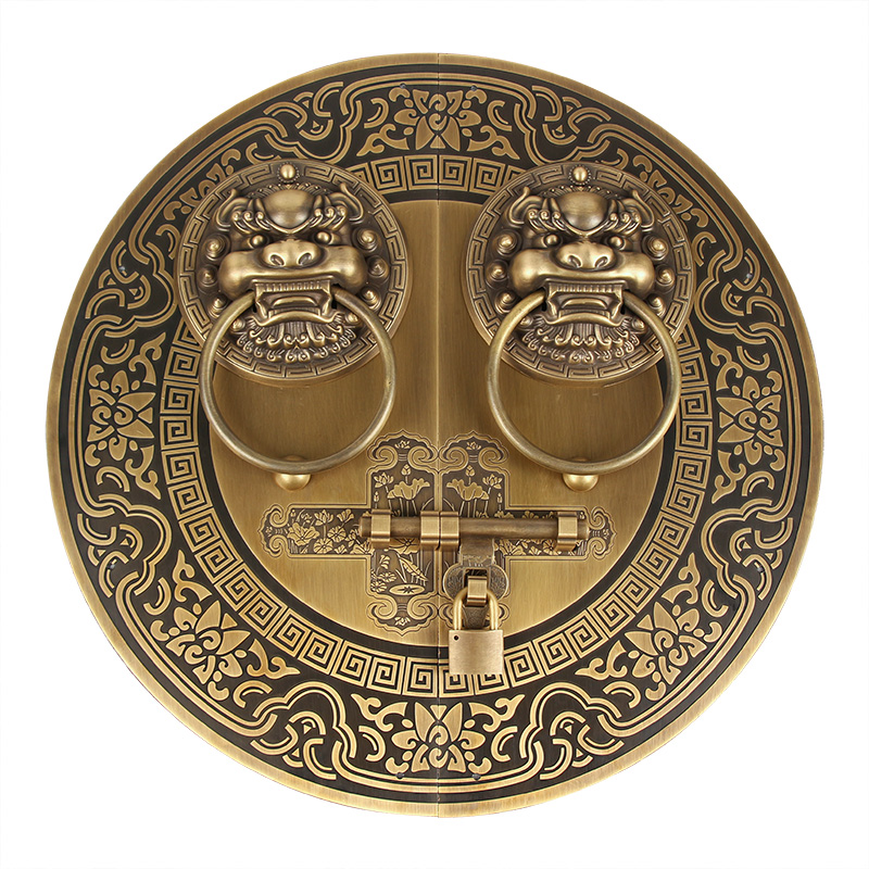 您的位置:他他商城  >   >  新中式仿古纯f铜大门插销兽头麒麟头门环铜拉手古典别墅木门门把