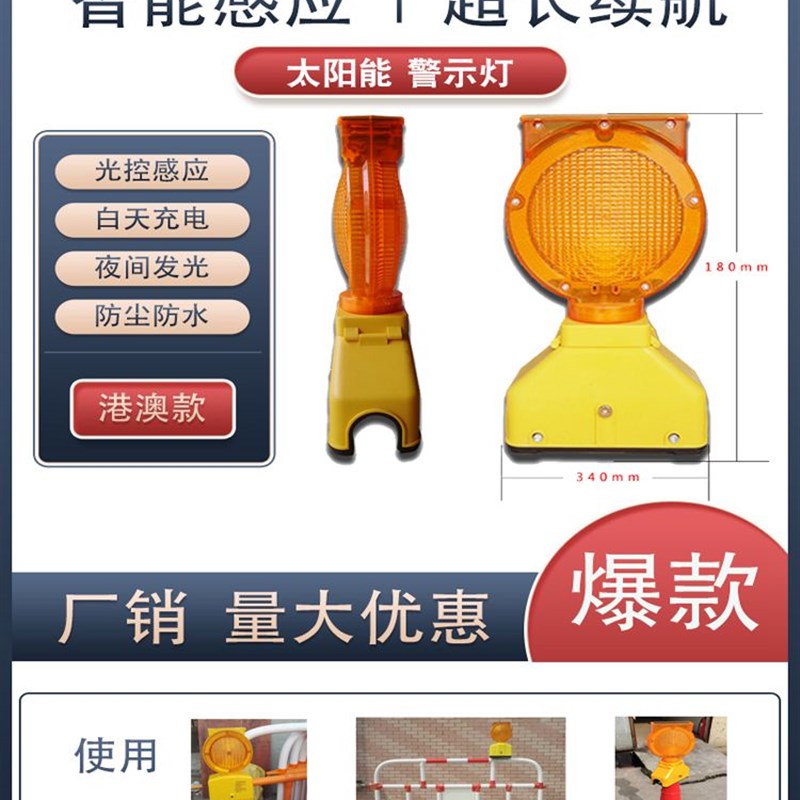 LED港澳款交h通太阳能警示灯路障护栏灯路锥黄闪灯安全施工防护 - tb839342083723