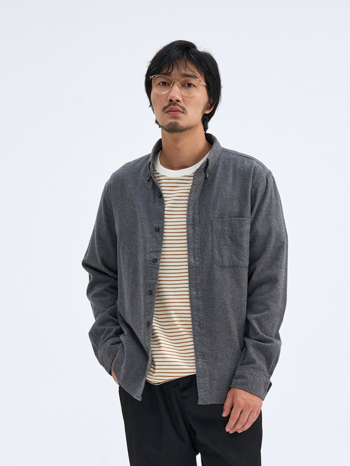 NATIVEWELL多色磨毛长袖衬衫定番button down衬衫版型柔软秋季 - Nativewell复古服饰