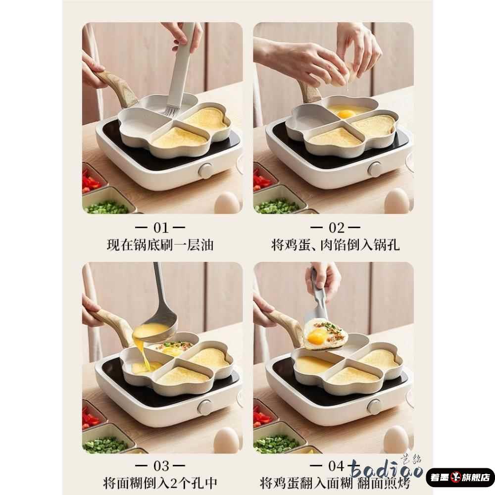 麦饭石四孔煎蛋锅平底不粘煎饼锅家用早餐爱心鸡蛋汉堡锅煎蛋神器 - 着墨旗舰店