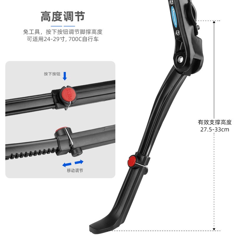 24-29寸自行车通用脚撑边撑铝合金支撑高度可调U节脚踢停车支架