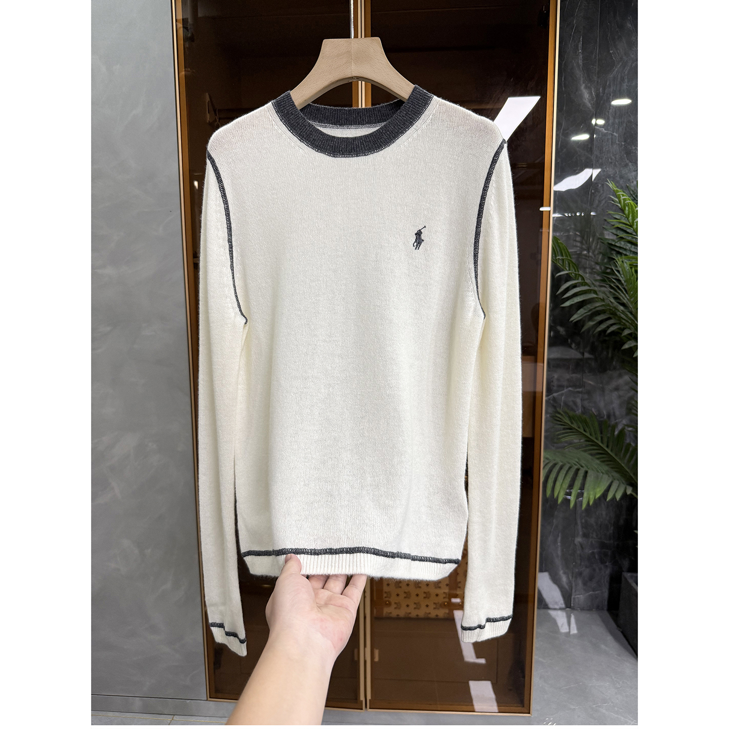 厂里老板咆哮推荐!撞色羊绒圆领长袖针织毛衣女 D8071~ME - 锐雪加