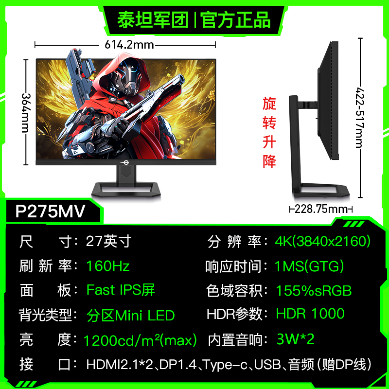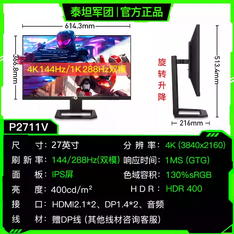 泰坦军团27英寸电竞显示器液晶高刷游戏电脑屏幕外接笔记本144Hz - intel英特尔电脑旗舰店