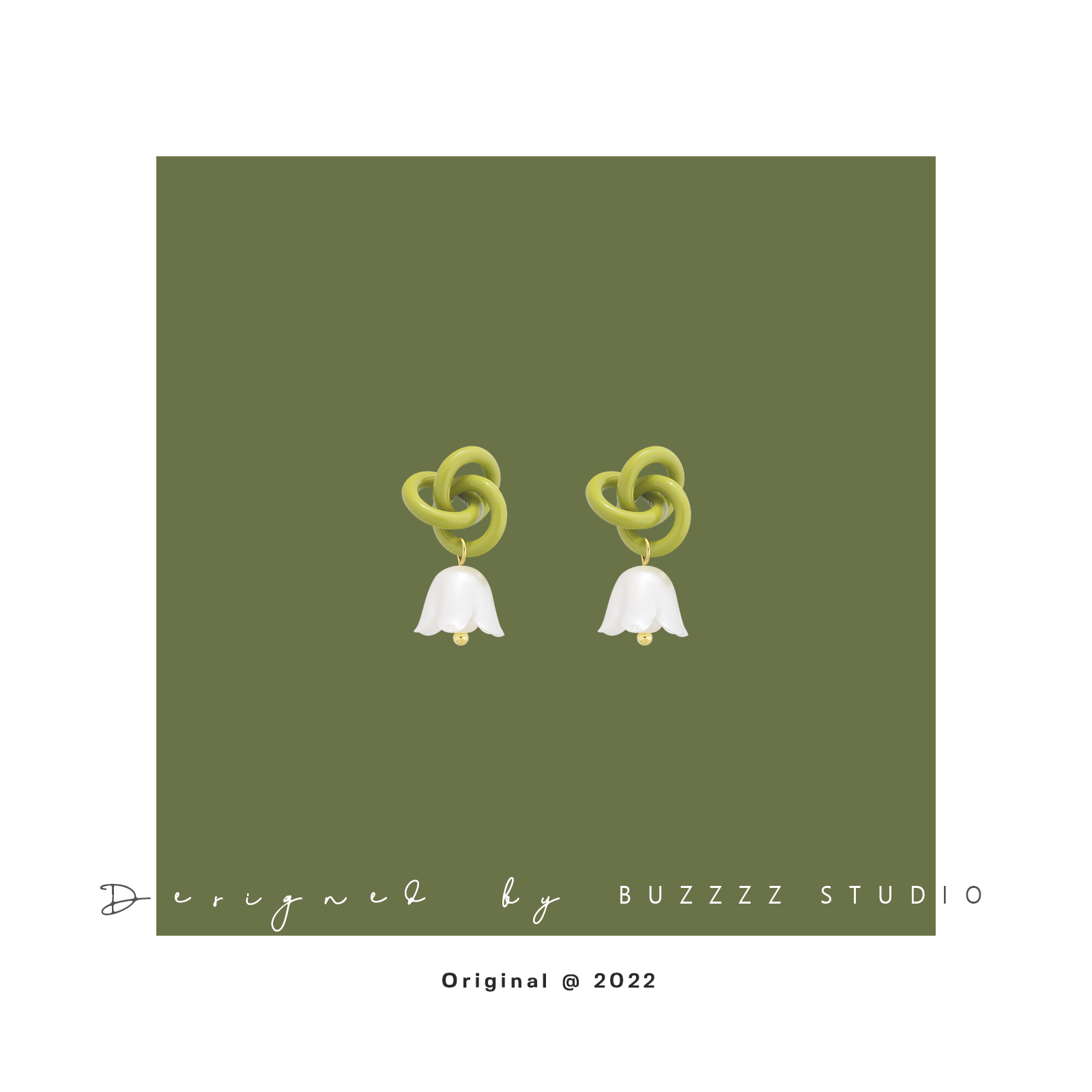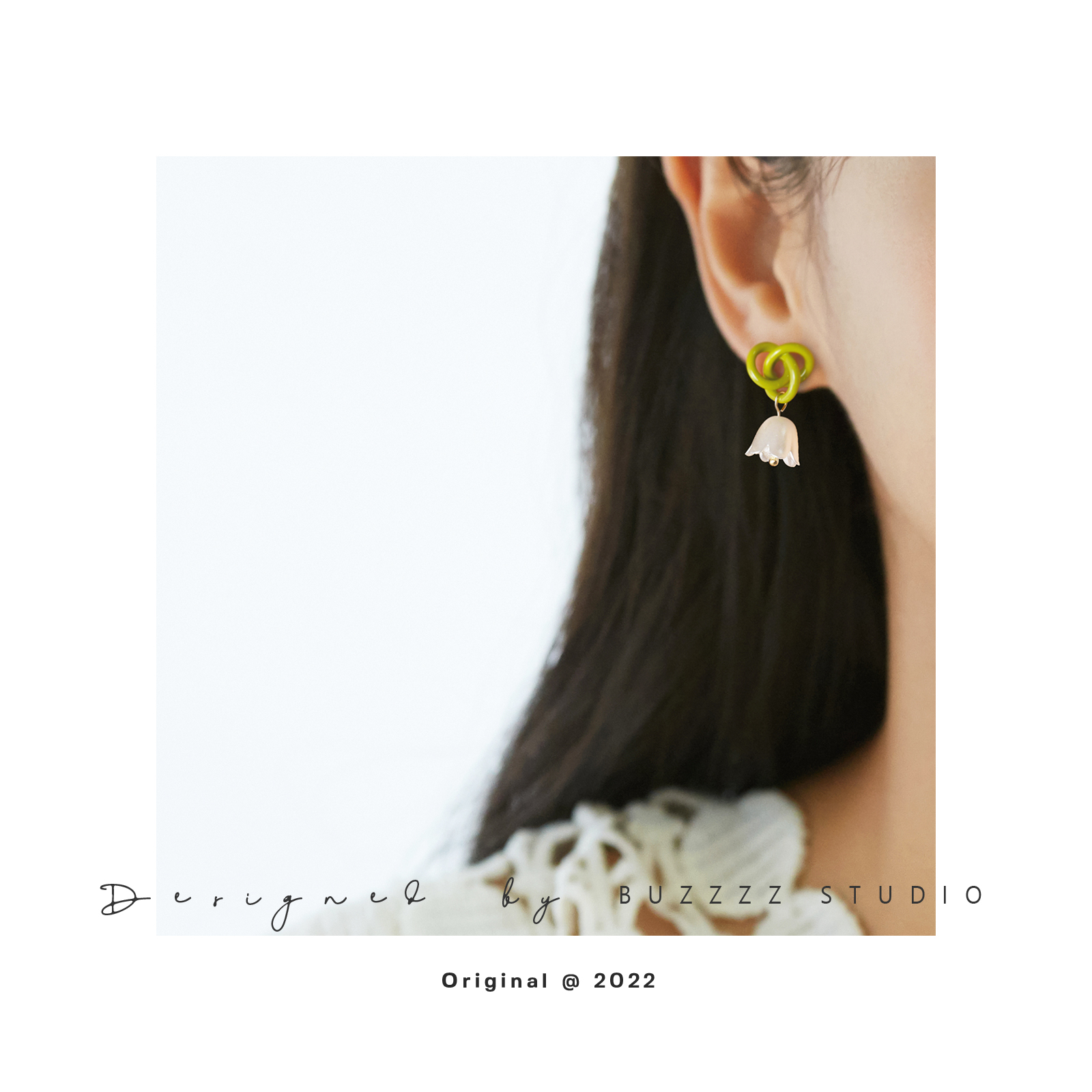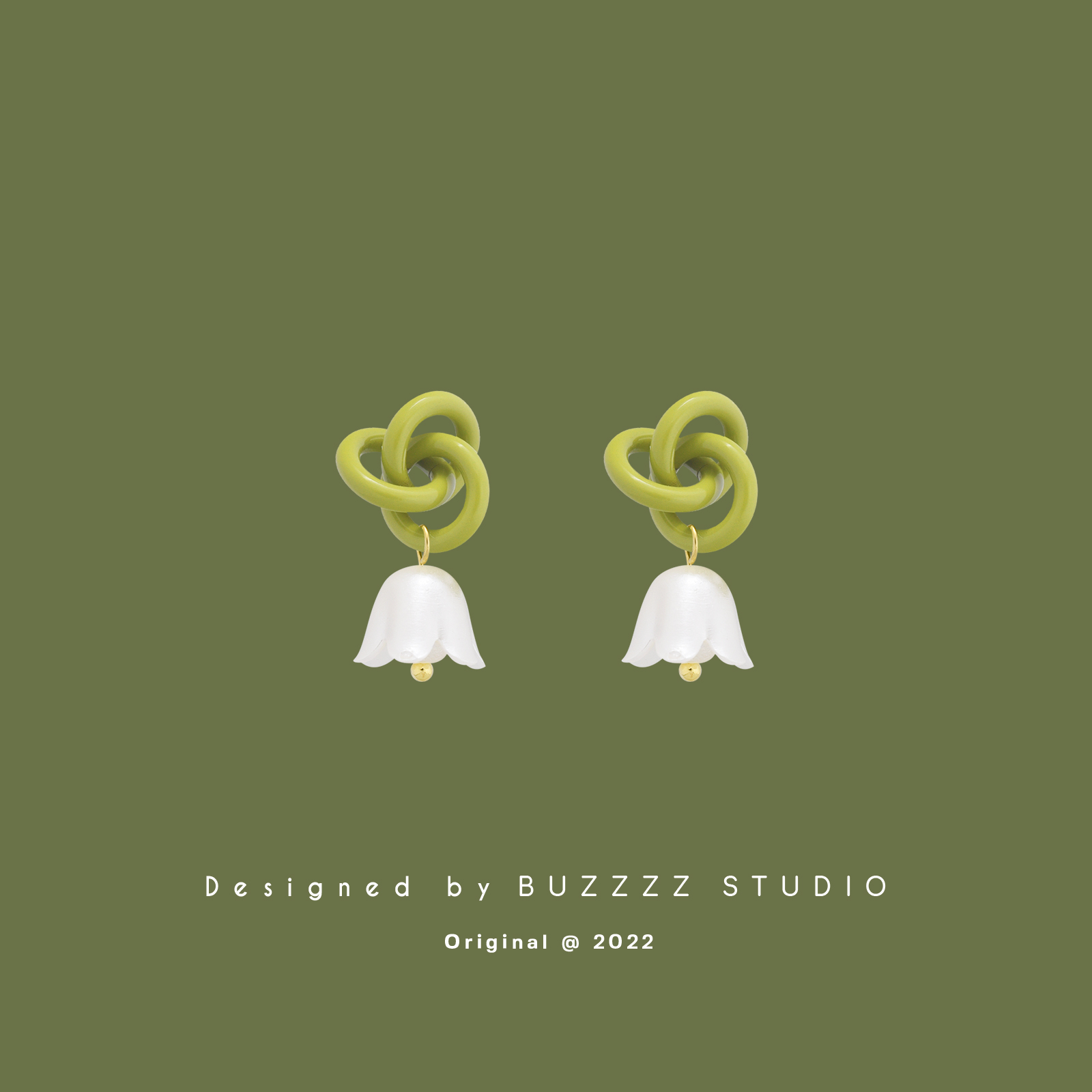 原创缠在耳上的铃兰花耳钉银针夏季森系绿色花朵少女气质耳环耳夹 - BUZZZZ巴丝 设计师品牌