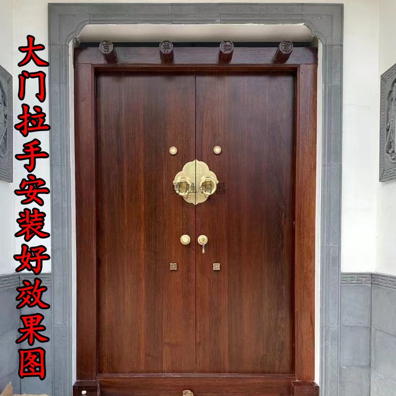中式仿古实木大门纯铜实心圆环大拉手财丁兴旺囍字纯铜拉手门环铜