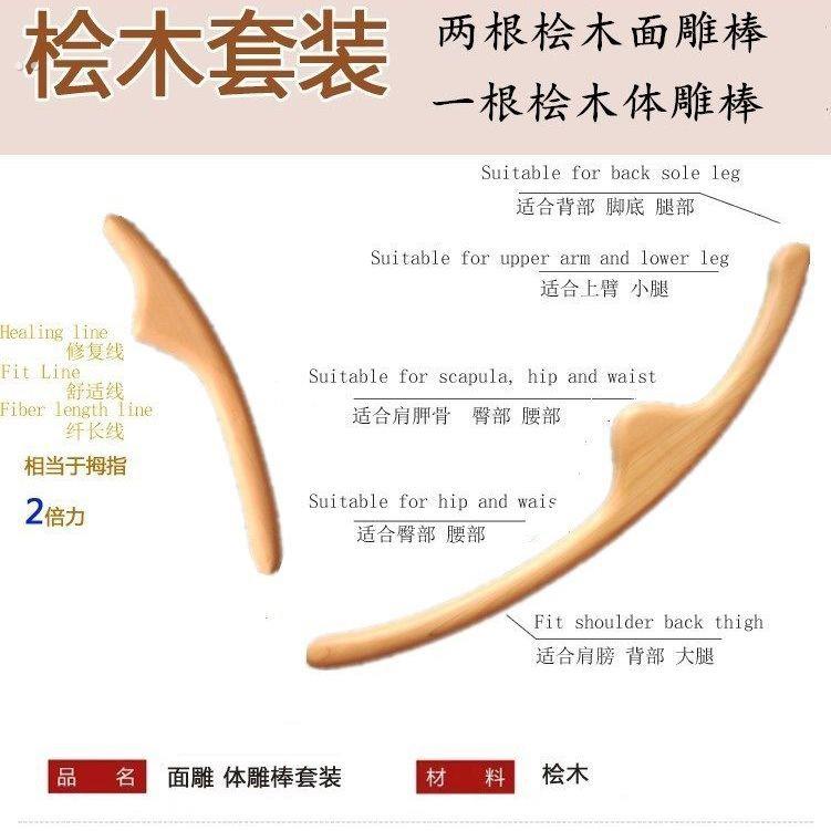 日式桧木体雕面雕棒瘦脸部美体塑形雕塑棒刮痧点穴按摩擀筋美容院 - 豪华工厂直销