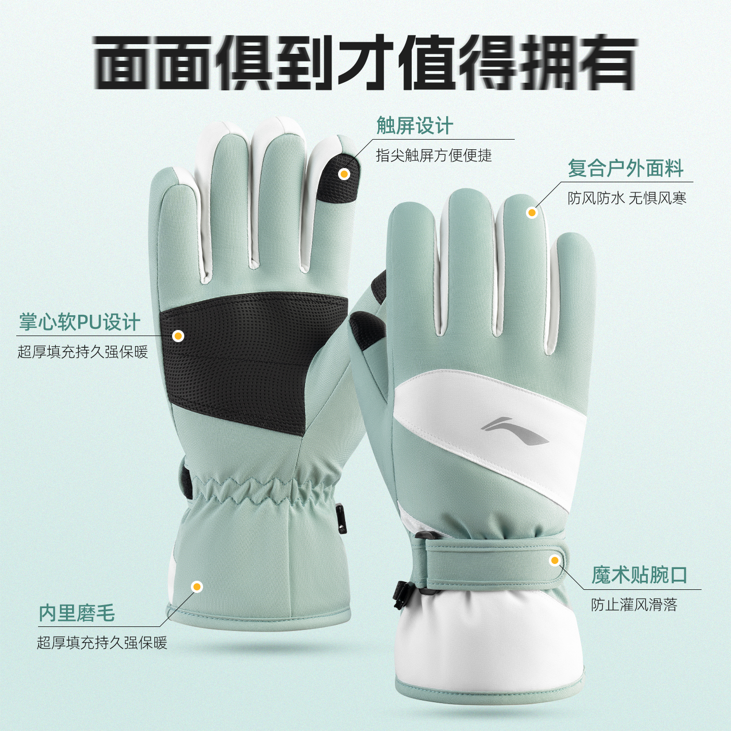 李宁骑行手套冬季女保暖加厚电动摩托车滑雪御寒防风防水可触屏男 - 思壮伟业运动专营店