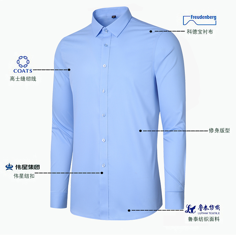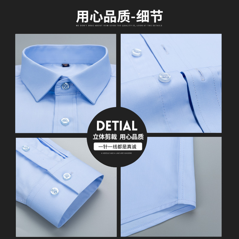 罗蒙免烫抗皱衬衫男士长袖秋季新款商务休闲正装职业蓝色白衬衣 - 罗蒙衬衫品质店