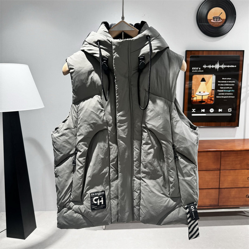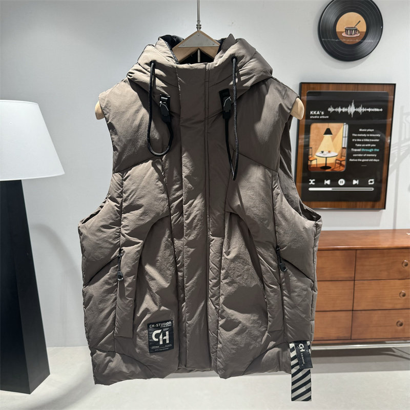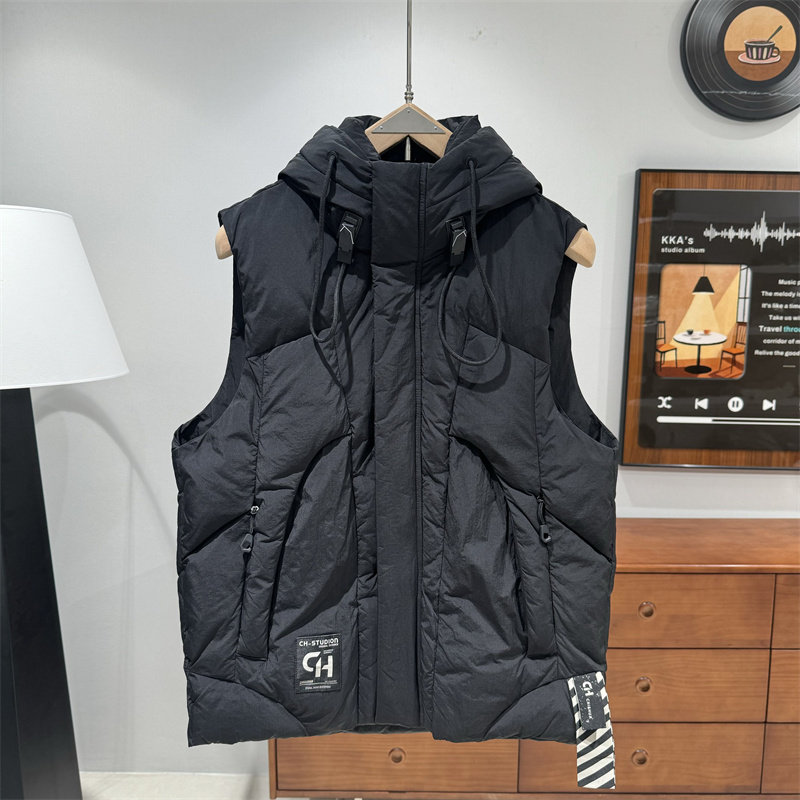 2025新款连帽棉马甲男士秋冬季加厚保暖坎肩背心外套潮牌工装马夹 - AF朴素型男装