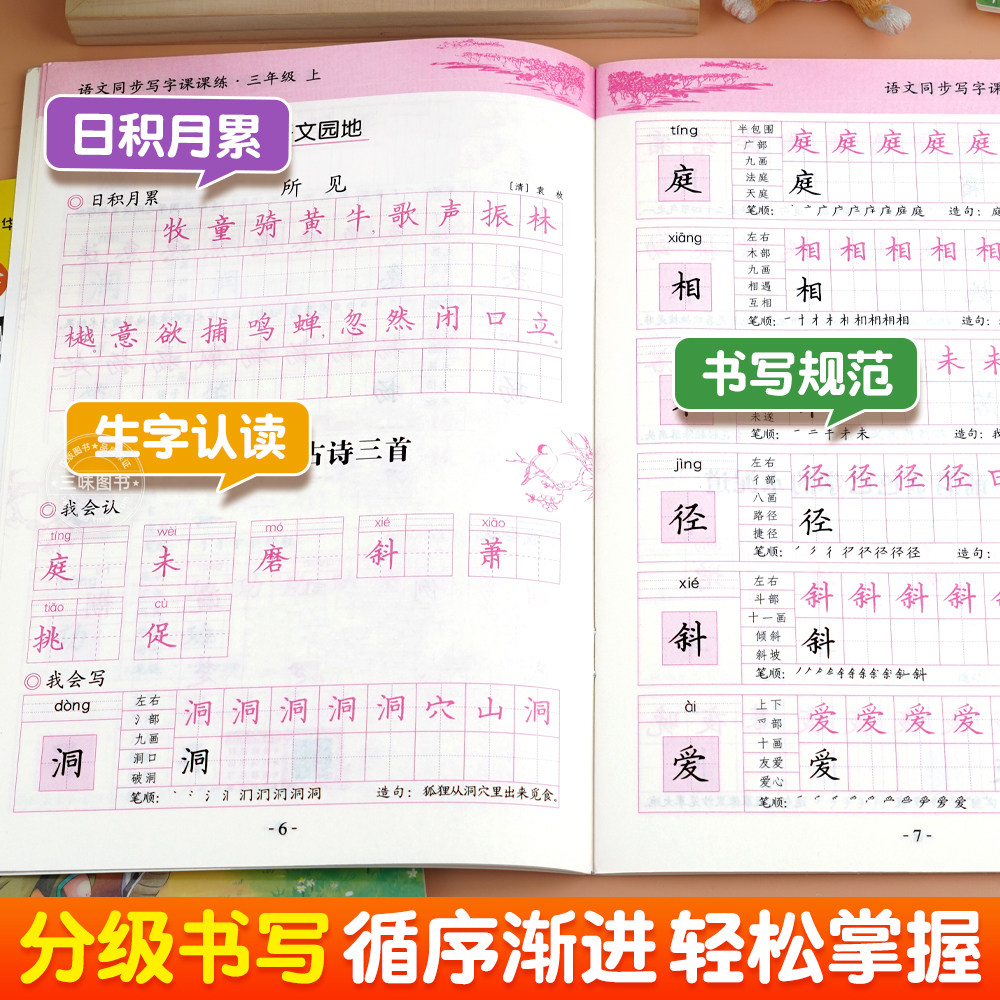 正版小学生同步练字帖硬笔字帖一年级练字字帖二三年级四五六七八年级上册下册语文同步练字帖人教版每日一练描红本楷书写字课课练 - 三味旗舰店