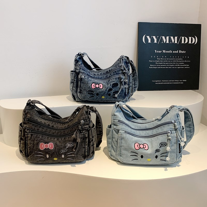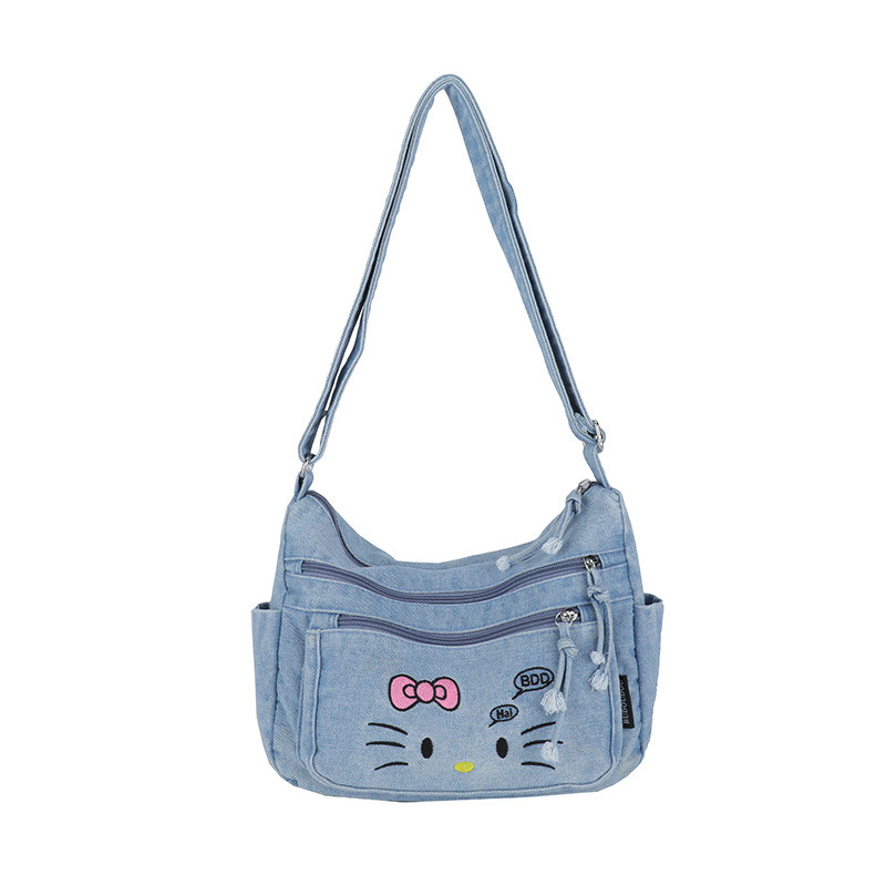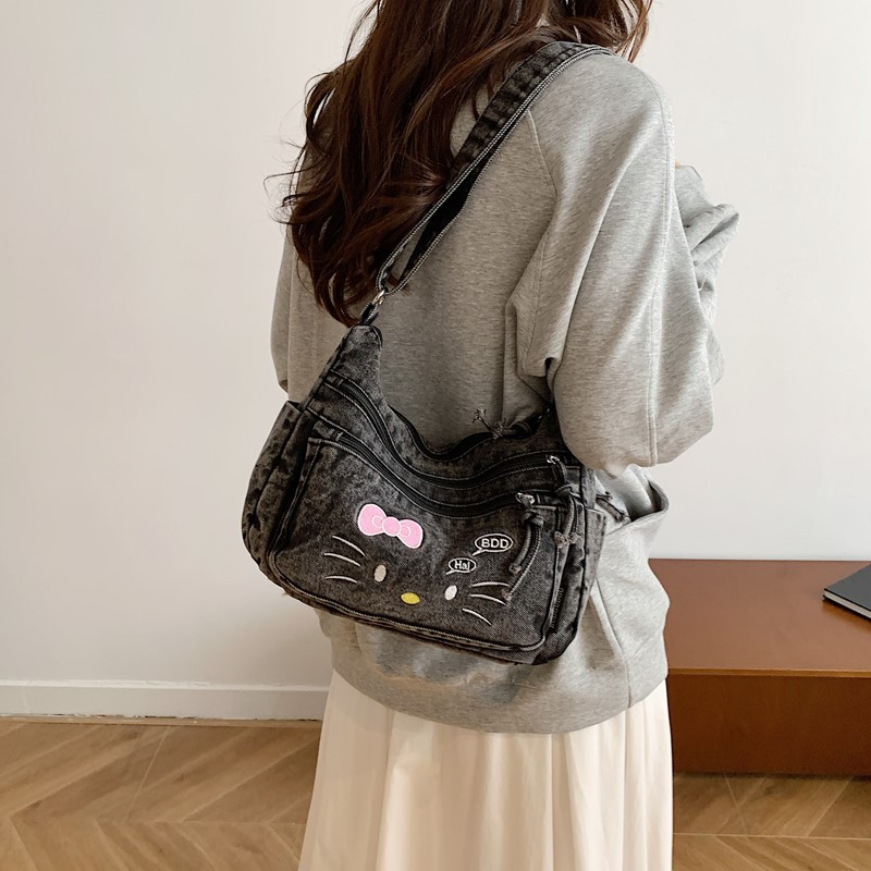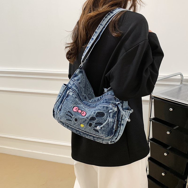 牛仔布包包女孩KT猫2025新款休闲单肩斜挎包大学生上课通勤托特包 - 丹麦姿