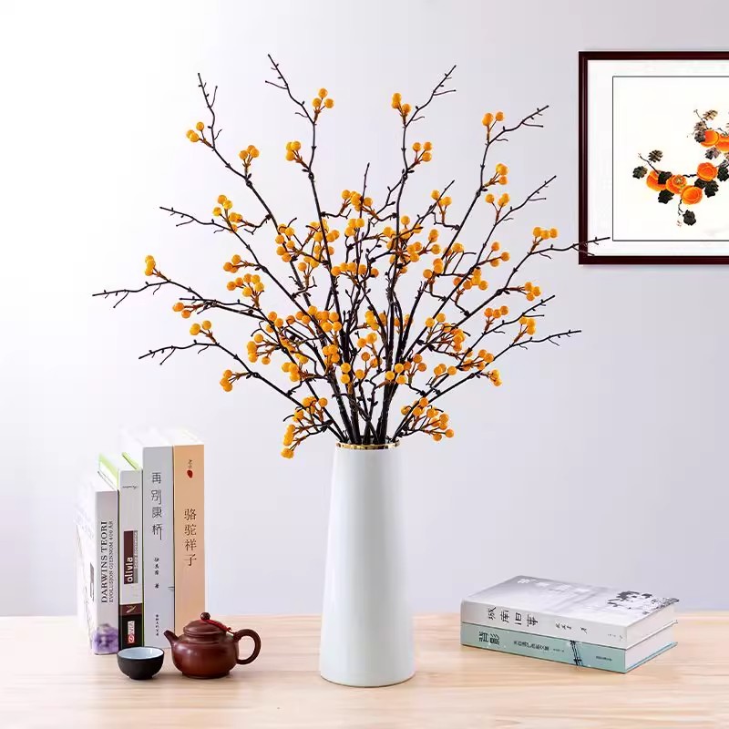 冬青黄色浆果发财红果仿真花过年宵花假花客厅电视柜花艺装饰摆件 - 绿野家居园艺