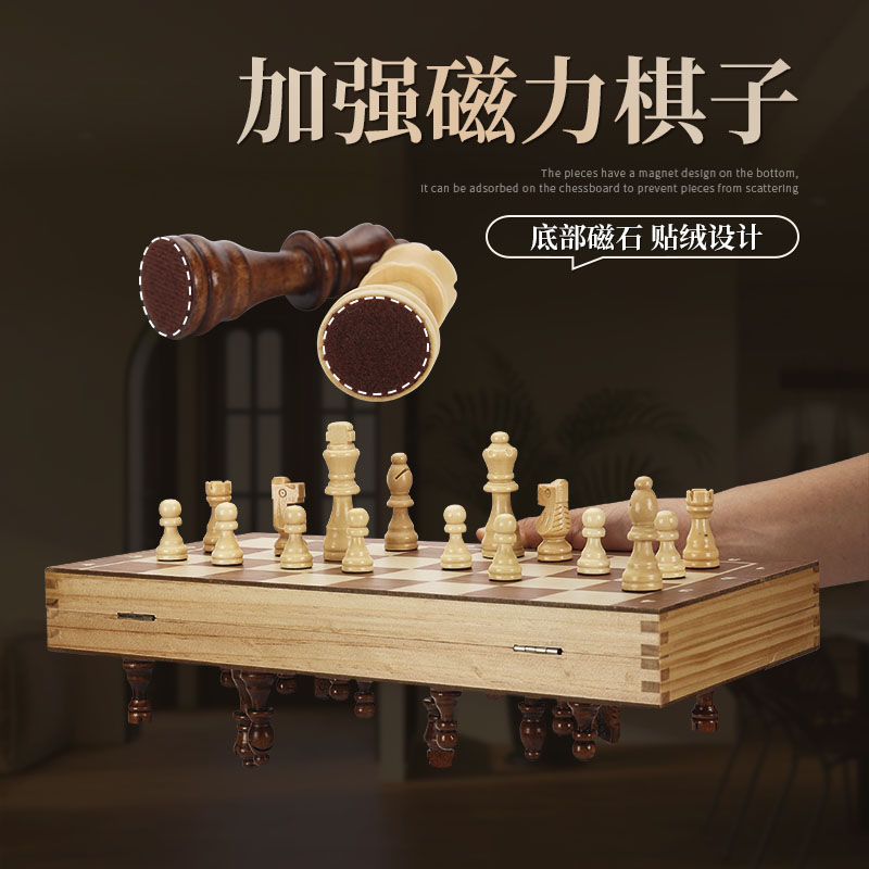 国际象棋带磁性实木质棋盘小学生儿童折叠便携高档比赛专用chess