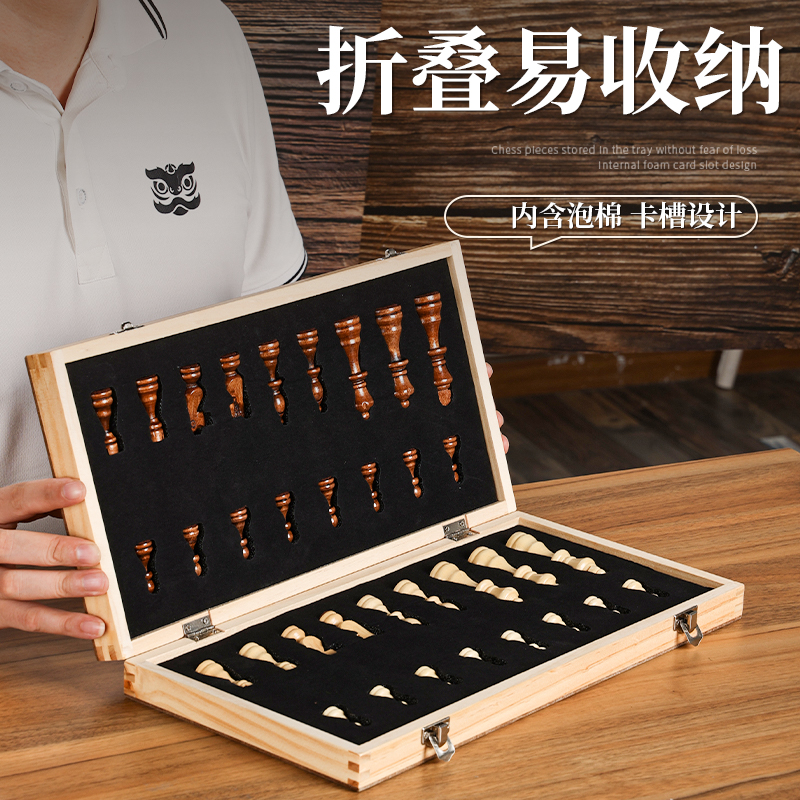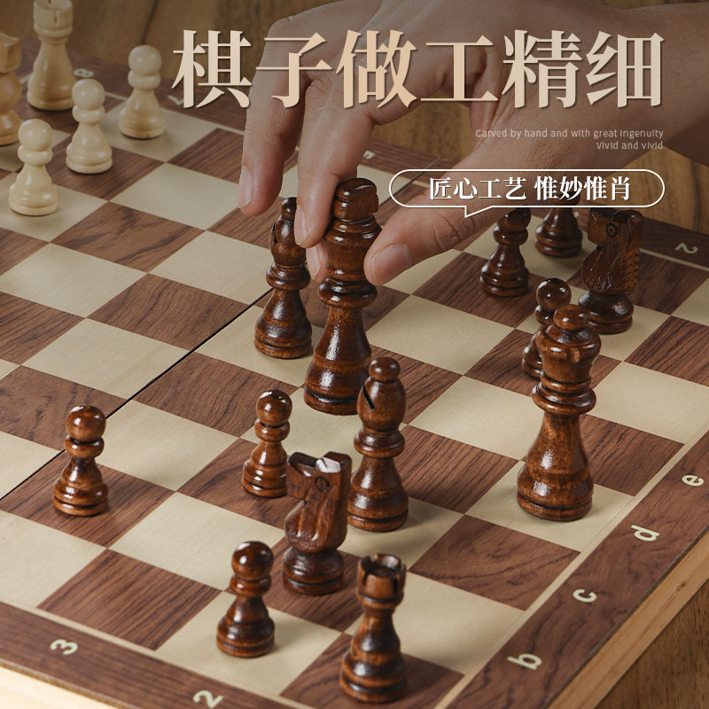 国际象棋带磁性实木质棋盘小学生儿童折叠便携高档比赛专用chess - 文牛运动户外旗舰店