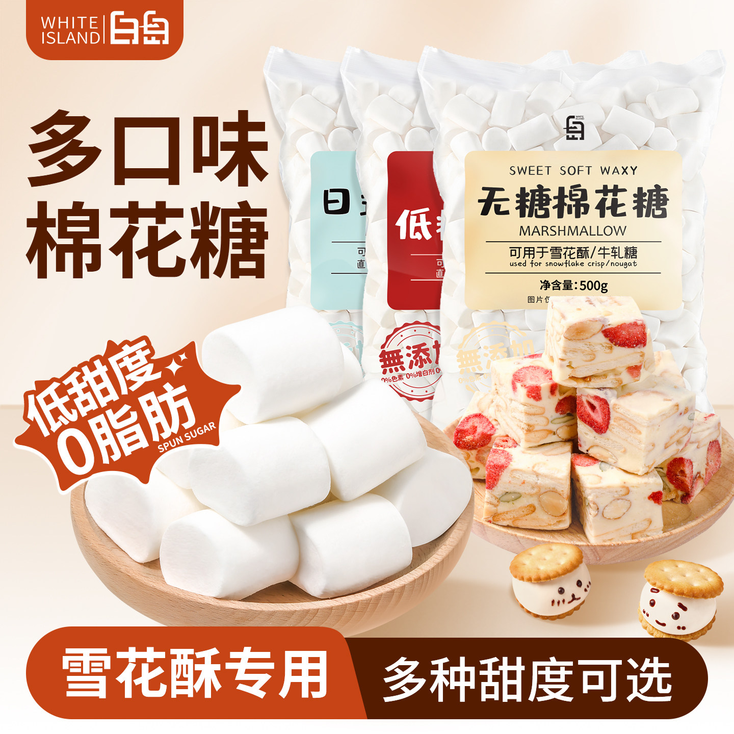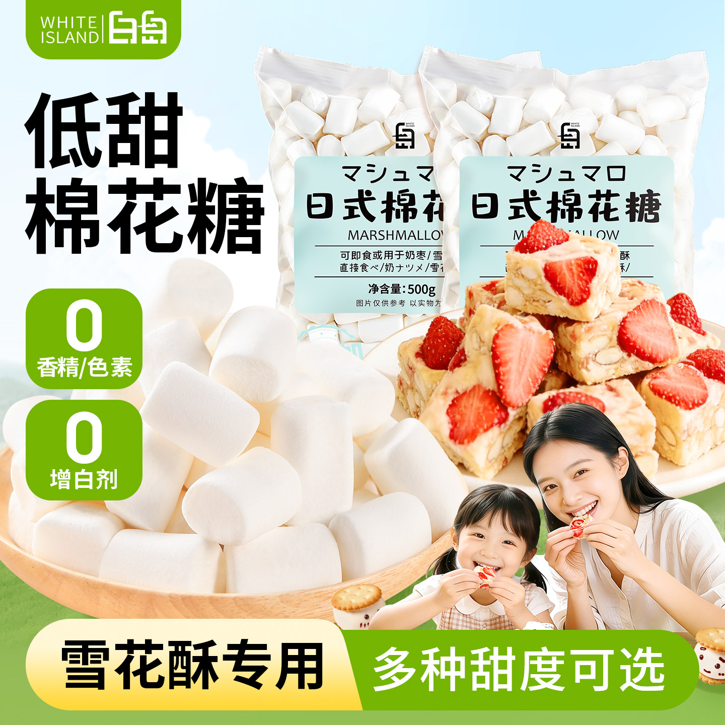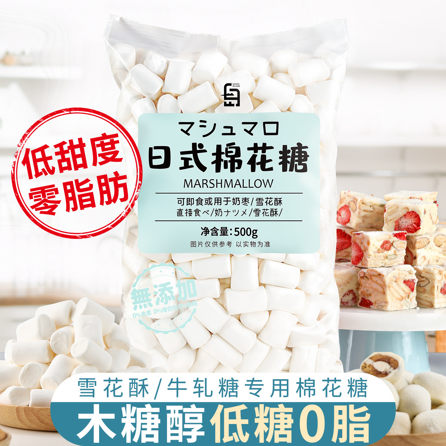 白岛日式棉花糖烘焙雪花酥专用原材料套餐低糖diy牛轧糖无糖白色g - 珺玲食品专营店
