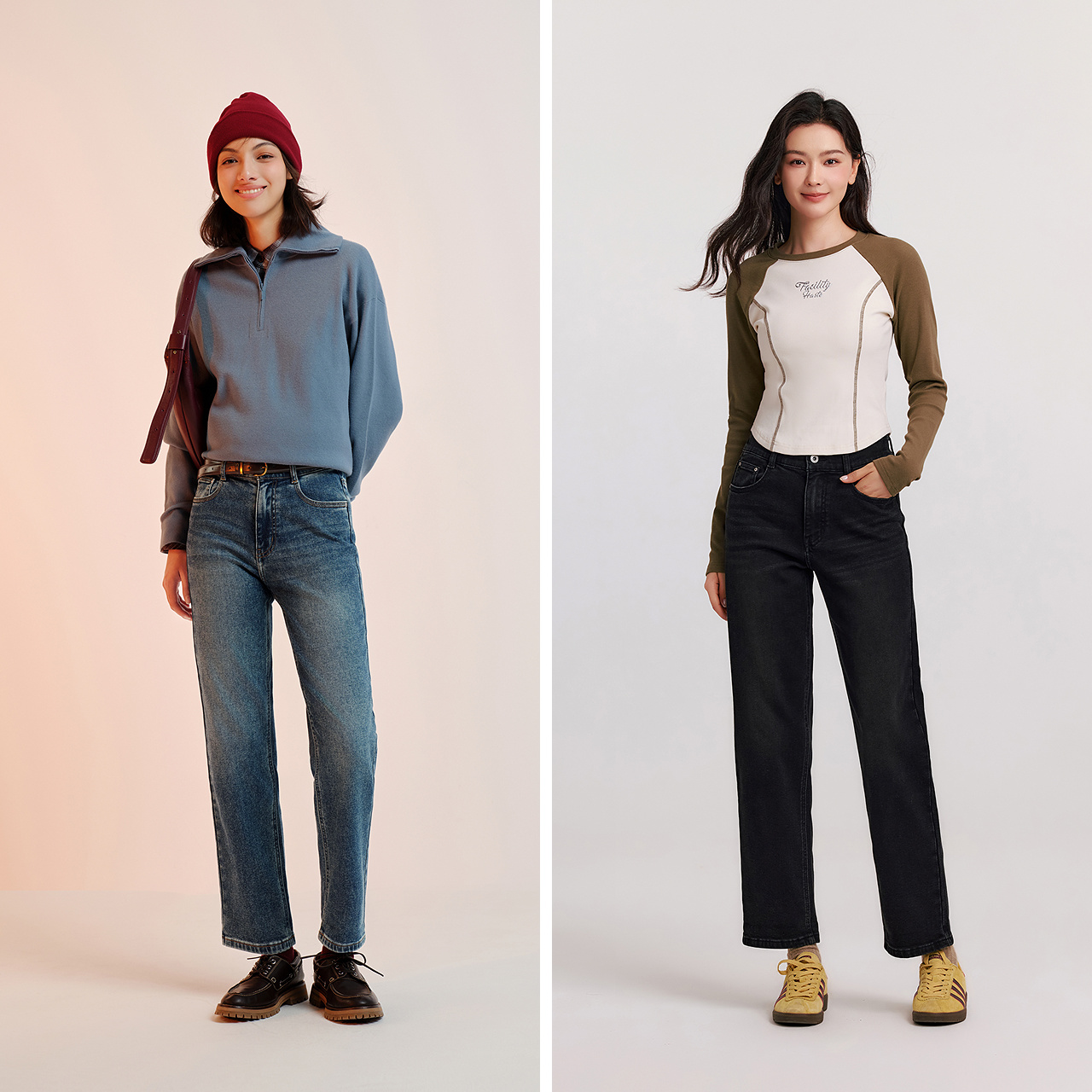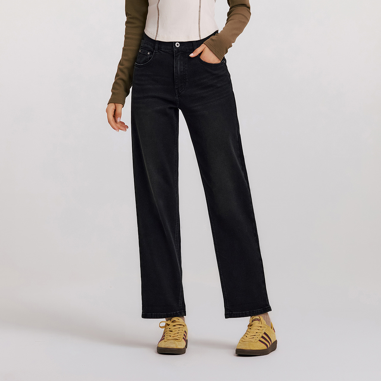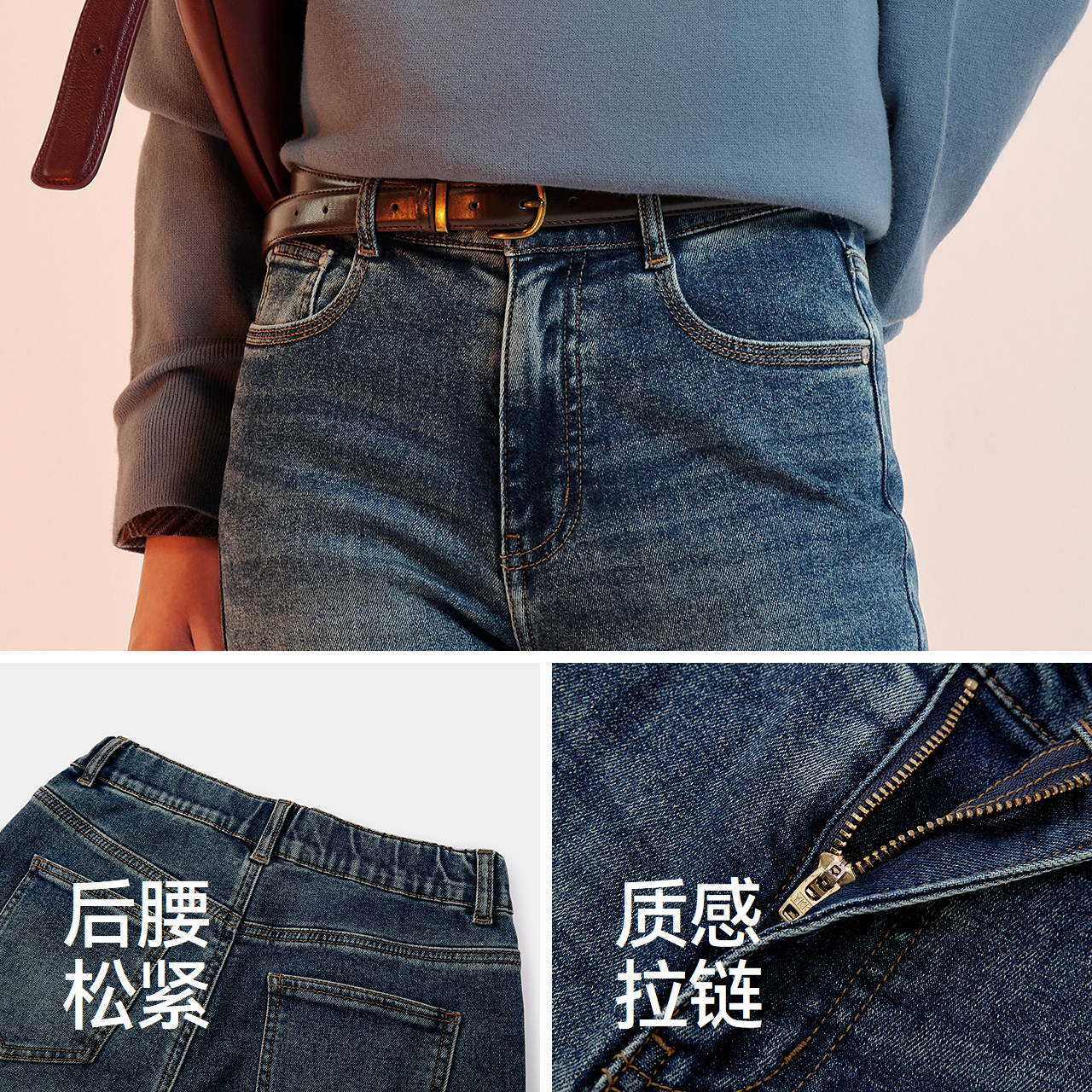 森柔牛仔|森马牛仔裤女抓毛长裤女生冬季半松紧腰直筒裤美式休闲 - 森马官方旗舰店