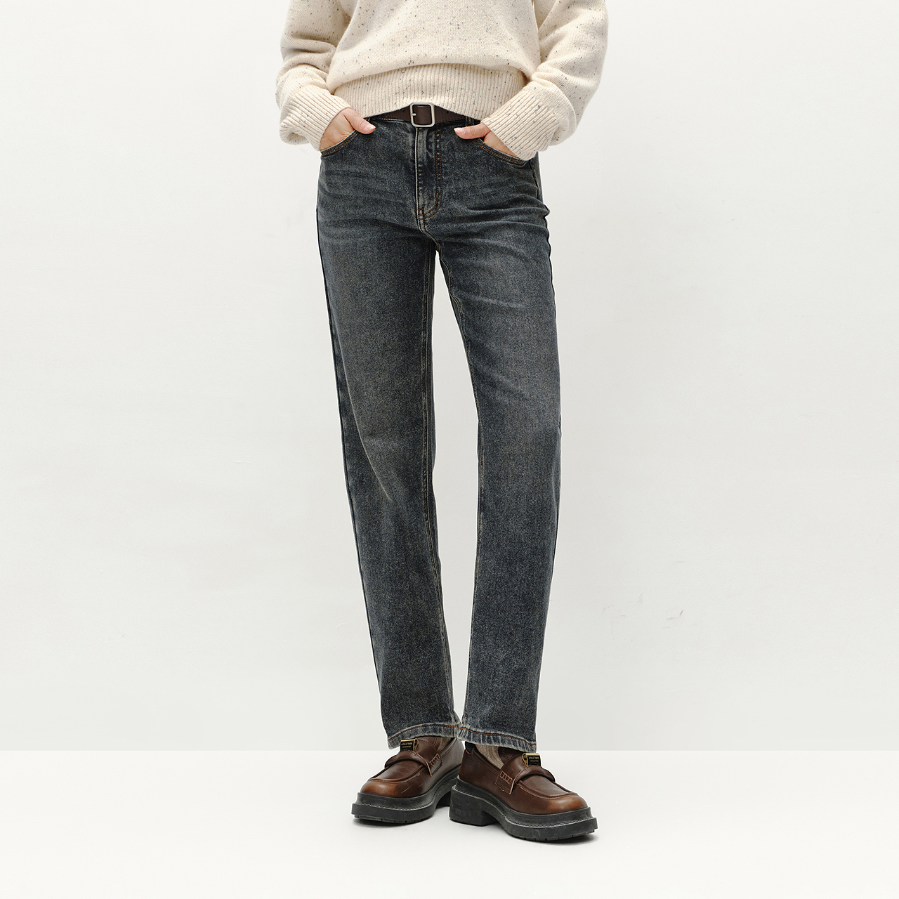 您的位置:他他商城  >  女装  >  森柔牛仔|森马牛仔裤女抓毛长裤女生冬季半松紧腰直筒裤美式休闲