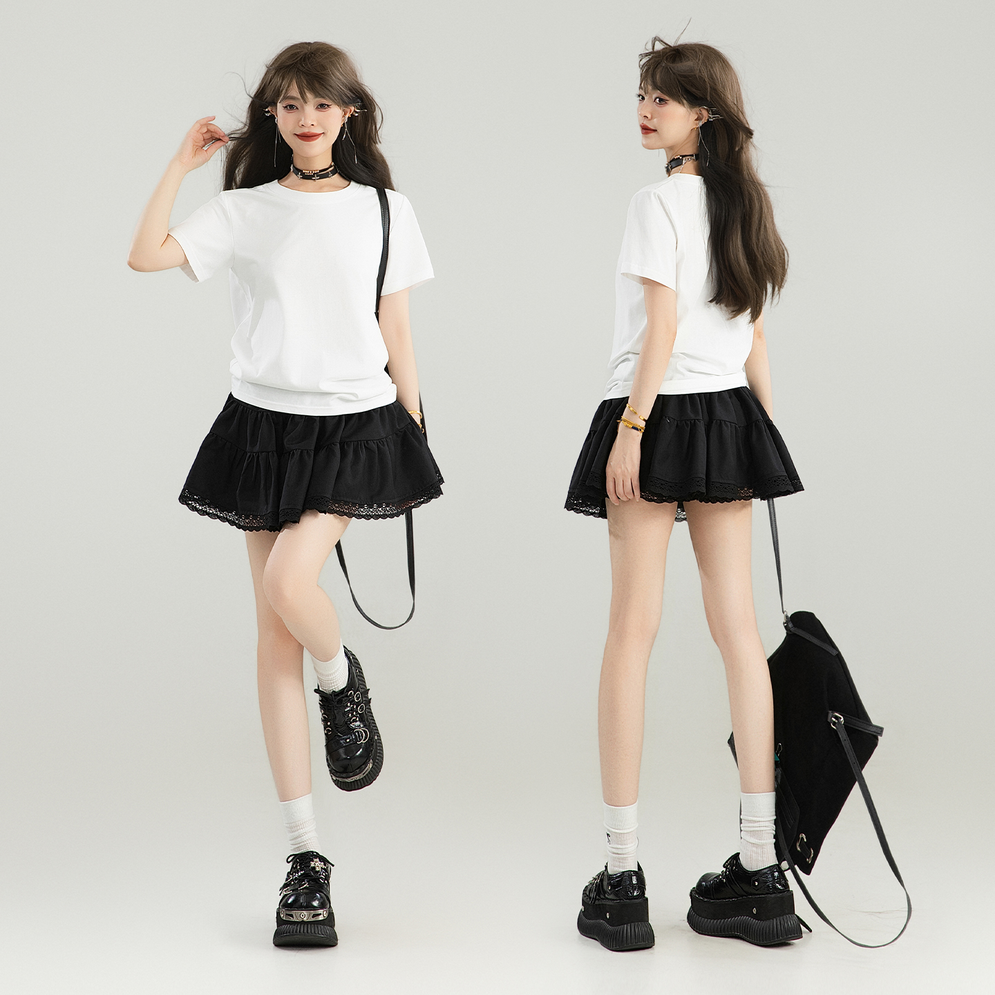 KEIKO 简约纯白色正肩短袖t恤新款百搭凉感精梳棉圆领上衣打底衫 - 凯莉欧服饰旗舰店