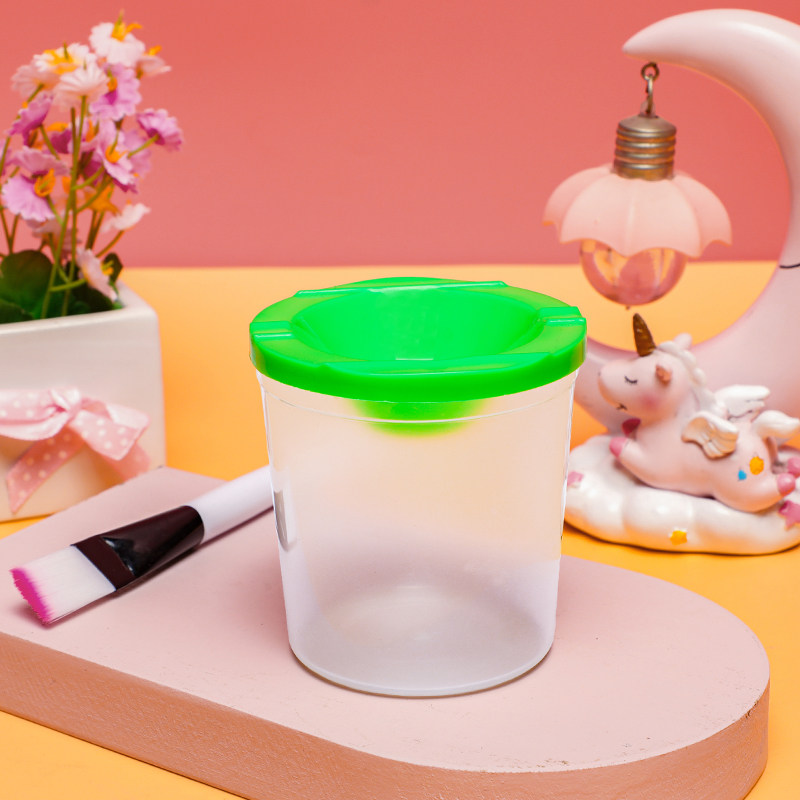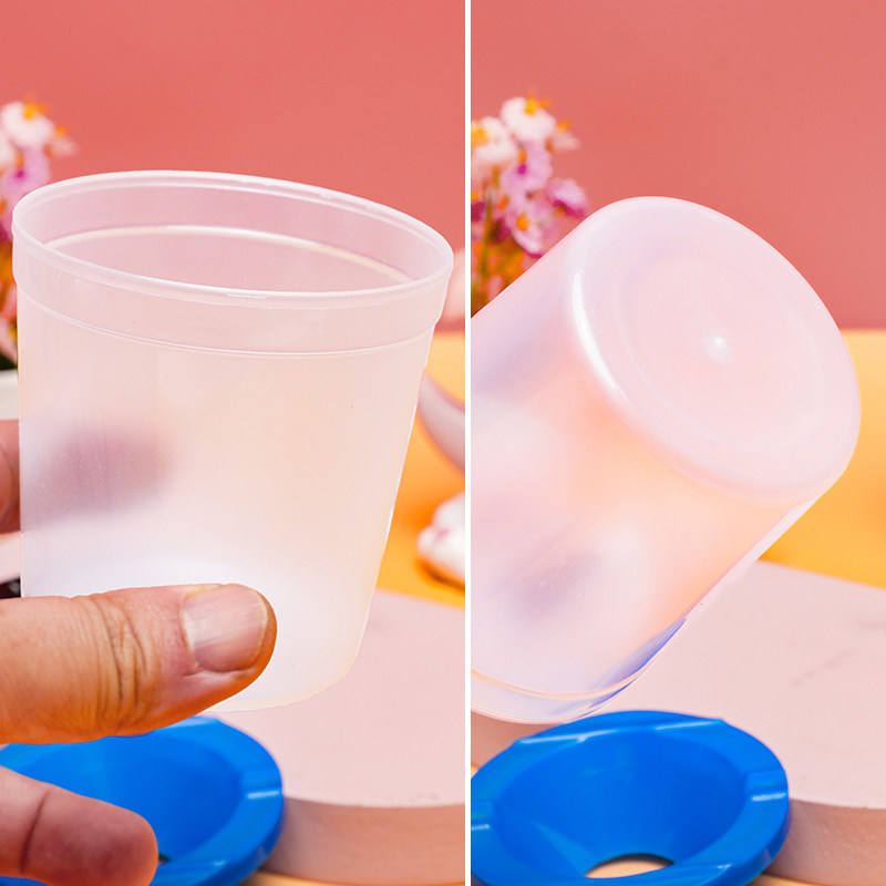 圆形透明塑料带盖洗笔筒幼儿园儿童美术油画涂鸦材料颜料杯调色杯 - 金源厨房设备