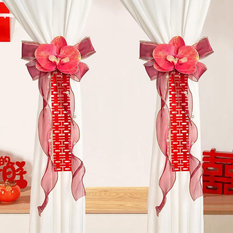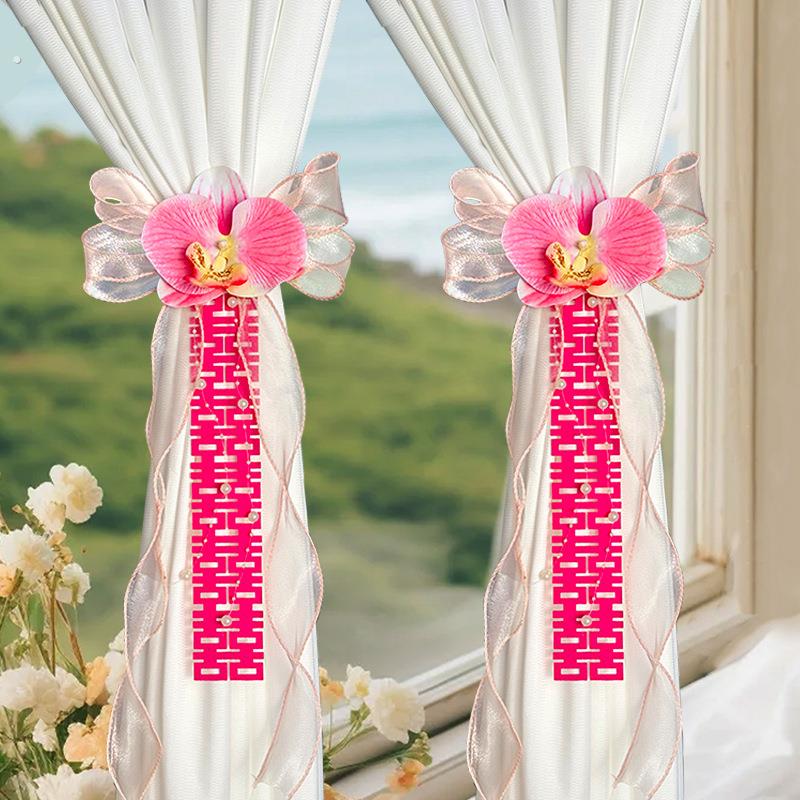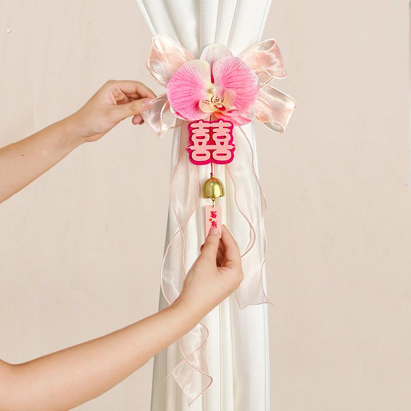 婚车装饰后视镜彷真花喜字蝴蝶兰车队拉花头副车婚庆楼梯扶手绢花 - vv工厂直销