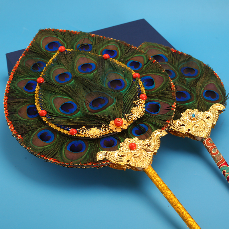 藏式贲巴壶文巴扇尼泊尔孔雀扇子眼羽毛装饰文巴净水壶7/18眼宝石