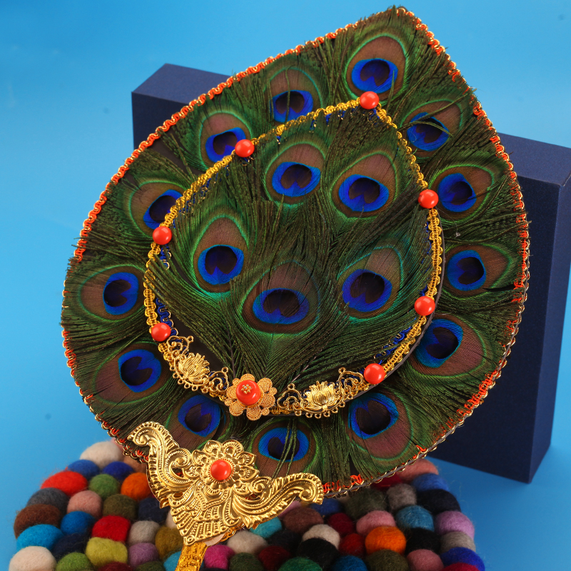 藏式贲巴壶文巴扇尼泊尔孔雀扇子眼羽毛装饰文巴净水壶7/18眼宝石 - 一叶如来家居饰品批发商城