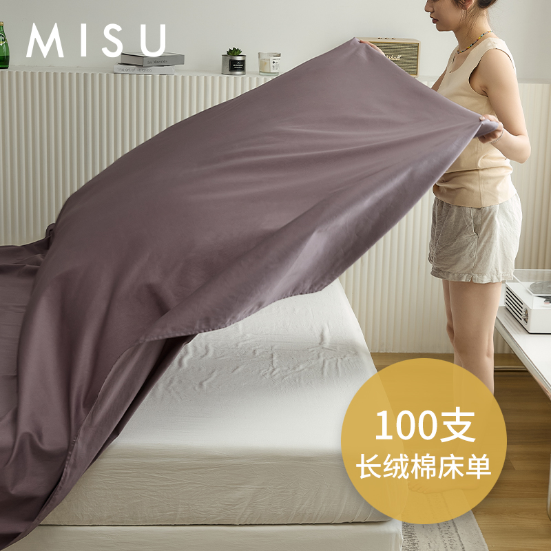 100支全棉长绒棉床单单件床单三件套被单简约纯色单人双人冬