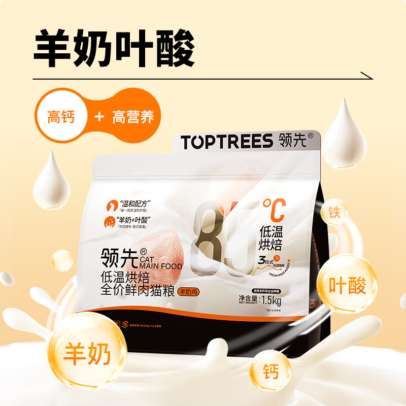 领先烘焙鲜肉全价猫粮成猫幼猫低温鸡肉蛋黄兔肉宠物羊奶鸡1.5kg