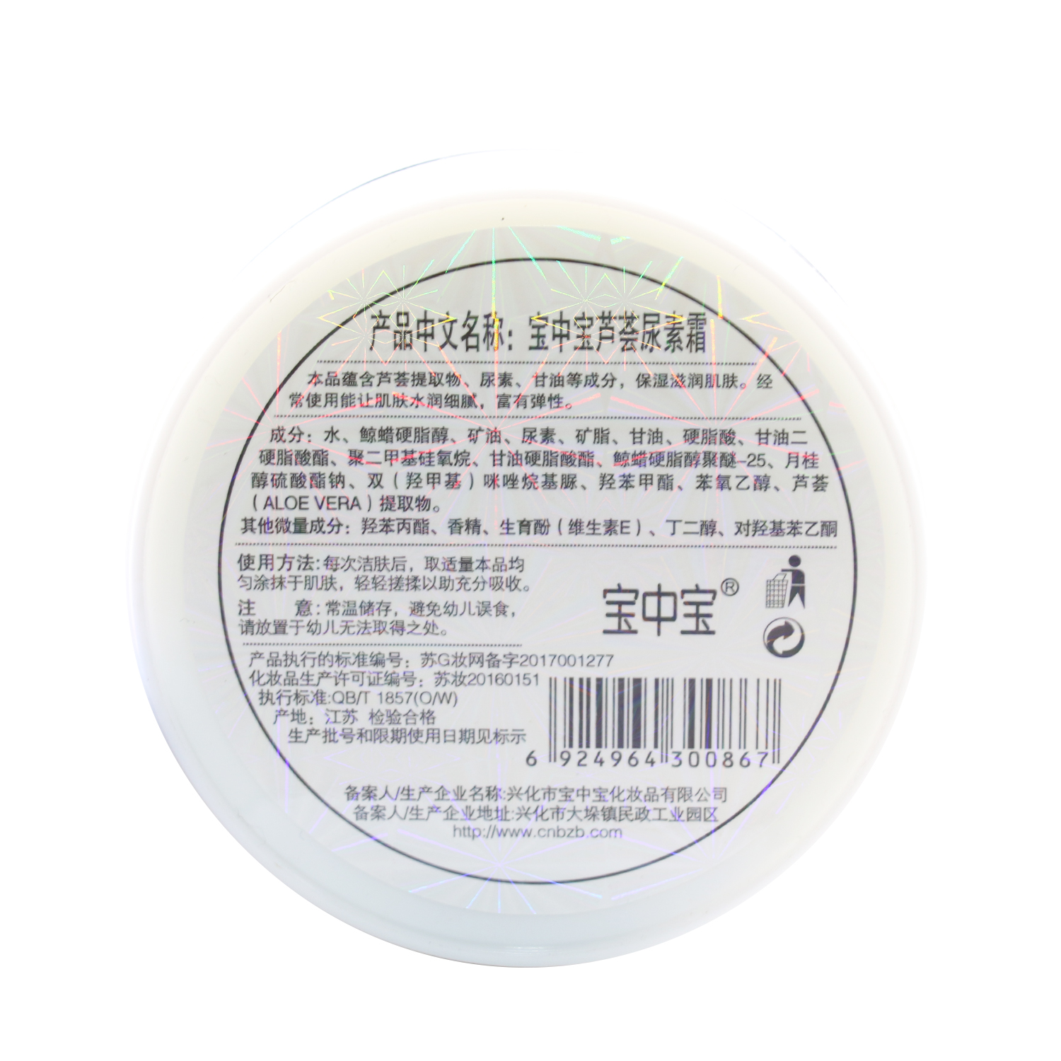 宝中宝芦荟尿素霜120g 芦荟面霜护手霜乳膏